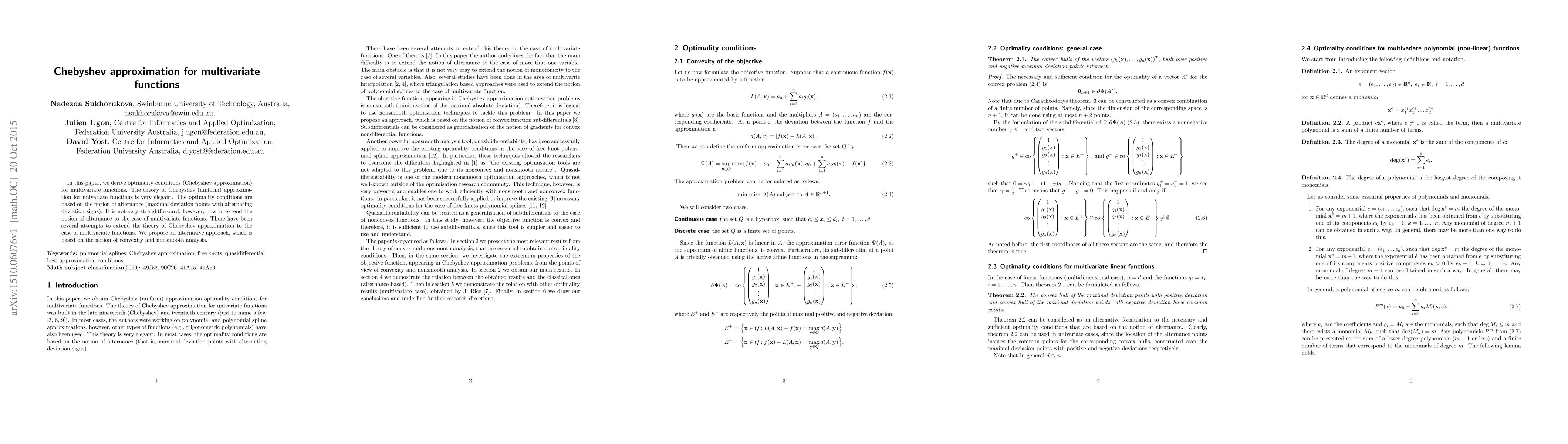 This paper develops optimality conditions for Chebyshev approximation of multivariate functions using convexity and nonsmooth analysis, addressing the challenge of extending the concept of alternance from univariate to multivariate cases.