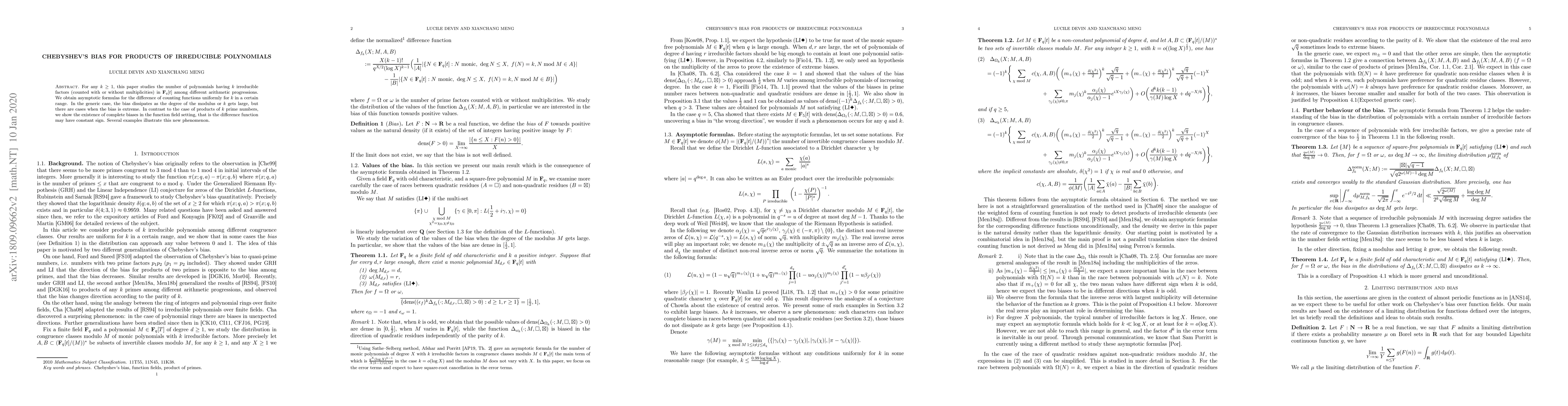 This paper studies how many polynomials have a certain number of irreducible factors in different arithmetic progressions. It finds cases where the difference between these counts can be constant, unlike when considering prime numbers.