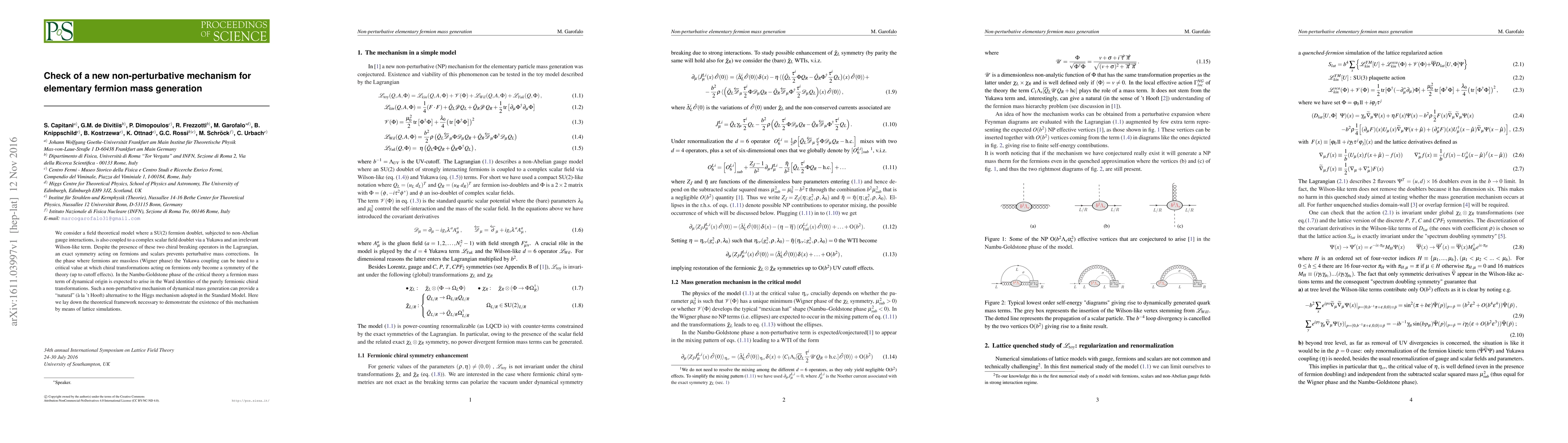 We consider a field theoretical model where a SU(2) fermion doublet, subjected to non-Abelian gauge interactions, is also coupled to a complex scalar field doublet via a Yukawa and an irrelevant Wilson-like term. Despite the presence of these two chiral breaking operators in the Lagrangian, an exact symmetry acting on fermions and scalars prevents perturbative mass corrections. In the phase where fermions are massless (Wigner phase) the Yukawa coupling can be tuned to a critical value at which chiral transformations acting on fermions only become a symmetry of the theory (up to cutoff effects). In the Nambu-Goldstone phase of the critical theory a fermion mass term of dynamical origin is expected to arise in the Ward identities of the purely fermionic chiral transformations. Such a non-perturbative mechanism of dynamical mass generation can provide a "natural" (\`a la 't Hooft) alternative to the Higgs mechanism adopted in the Standard Model. Here we lay down the theoretical framework necessary to demonstrate the existence of this mechanism by means of lattice simulations.