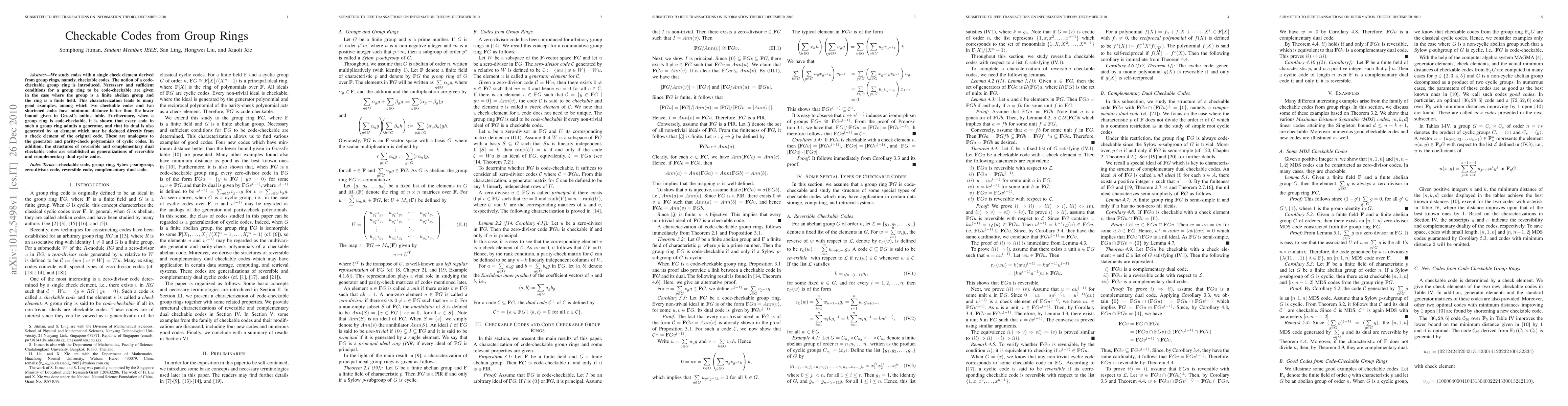 This paper investigates checkable codes derived from group rings, introducing the concept of a code-checkable group ring. It provides necessary and sufficient conditions for finite abelian group rings over finite fields to be code-checkable, identifying examples with improved minimum distances. It also establishes that code-checkable group rings allow every code to have a generator and a dual generated by elements directly linked to the check element.