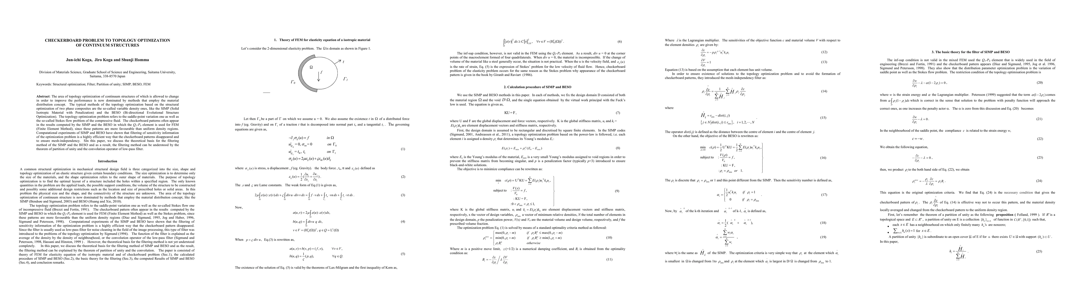 The paper explores the filtering method used in topology optimization methods like SIMP and BESO to eliminate checkerboard patterns from results, and discusses its theoretical basis through partition of unity and convolution operators.