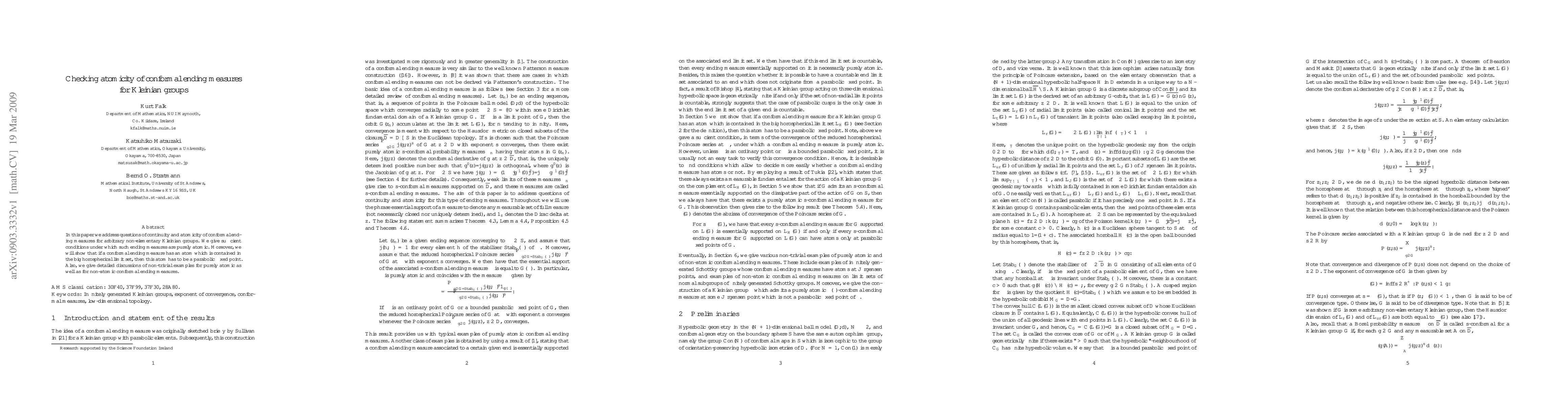This paper investigates the properties of conformal ending measures for Kleinian groups, finding that certain conditions ensure these measures are purely atomic, and that atoms contained in the big horospherical limit set must be parabolic fixed points.