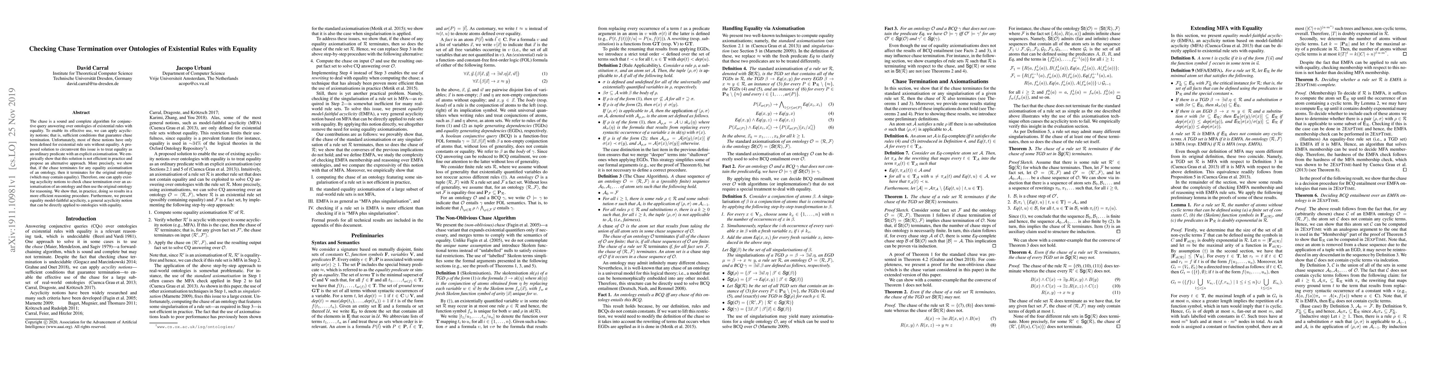 This paper proposes a method to ensure chase termination over ontologies containing existential rules with equality by employing acyclicity notions. It demonstrates that chase termination holds for an ontology's equality axiomatization if it holds for the ontology itself, thus allowing efficient reasoning using existing acyclicity notions on the axiomatized form.