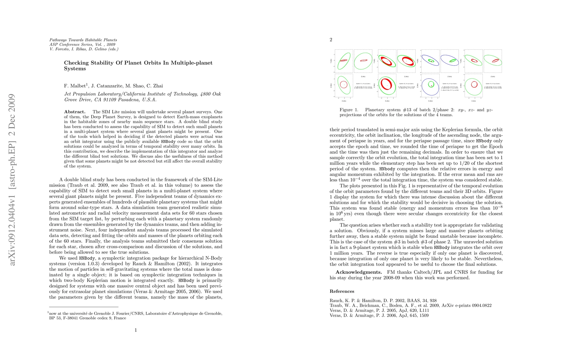 The SIM Lite mission will undertake several planet surveys. One of them, the Deep Planet Survey, is designed to detect Earth-mass exoplanets in the habitable zones of nearby main sequence stars. A double blind study has been conducted to assess the capability of SIM to detect such small planets in a multi-planet system where several giant planets might be present. One of the tools which helped in deciding if the detected planets were actual was an orbit integrator using the publicly available HNBody code so that the orbit solutions could be analyzed in terms of temporal stability over many orbits. In this contribution, we describe the implementation of this integrator and analyze the different blind test solutions. We discuss also the usefulness of this method given that some planets might be not detected but still affect the overall stability of the system.