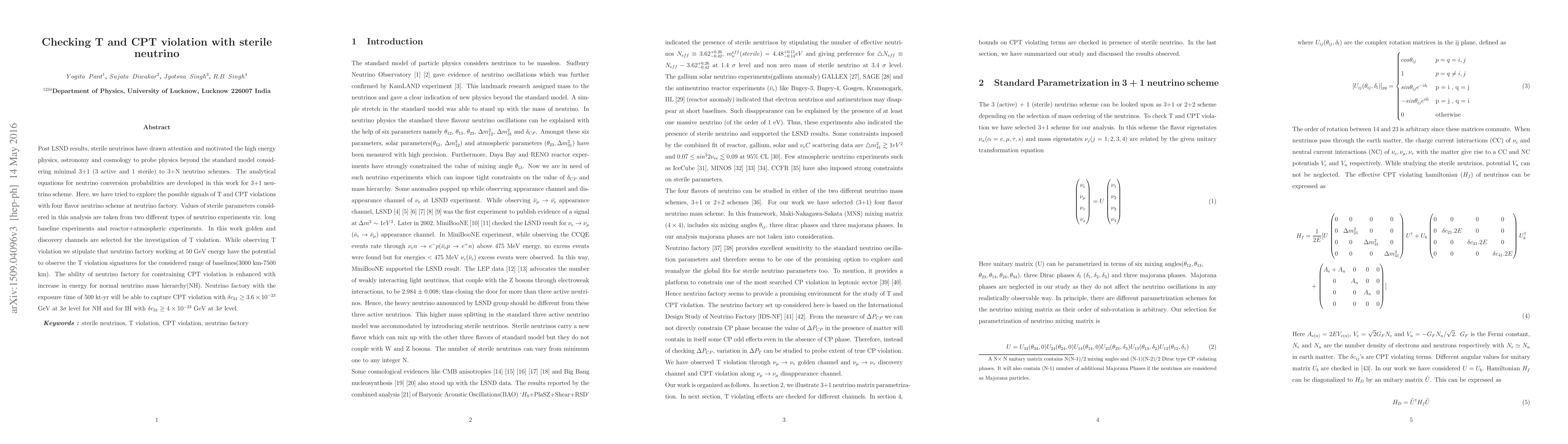 This paper develops analytical equations for neutrino conversion probabilities in a 3+1 neutrino scheme and explores potential T and CPT violation signals using a neutrino factory. The study finds that a neutrino factory operating at 50 GeV can detect T violation over baselines of 3000-7500 km and constrain CPT violation at levels of $ \delta c_{31}\geq 3.6\times10^{-23} $ GeV for normal hierarchy and $ \delta c_{31}\geq 4\times10^{-23} $ GeV for inverted hierarchy.