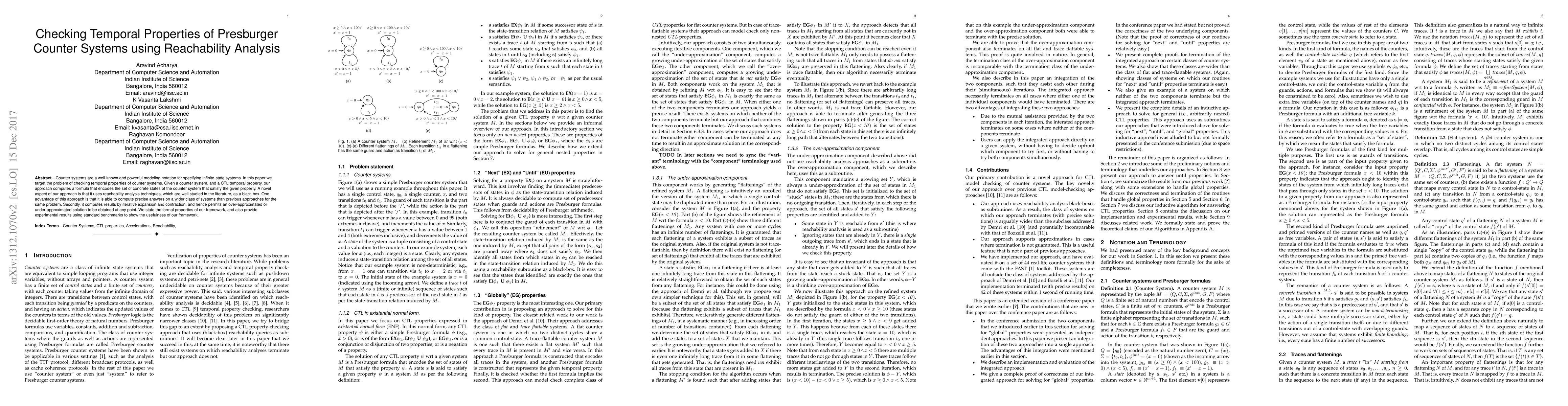 Counter systems are a well-known and powerful modeling notation for specifying infinite-state systems. In this paper we target the problem of checking temporal properties of counter systems. We first focus on checking liveness properties only, and propose two semi decision techniques for these properties. Both these techniques return a formula that encodes the set of reachable states of a given system that satisfy a given liveness property. A novel aspect of our techniques is that they use reachability analysis techniques, which are well studied in the literature, as black boxes, and are hence able to compute precise answers on a much wider class of systems than previous approaches for the same problem. Secondly, they compute their results by iterative expansion or contraction, and hence permit an approximate solution to be obtained at any point. We state the formal properties of our techniques, and also provide experimental results using standard benchmarks to show the usefulness of our approaches. Finally, we provide a technique for checking arbitrary CTL temporal properties, which use the liveness property checking techniques mentioned above as black boxes.