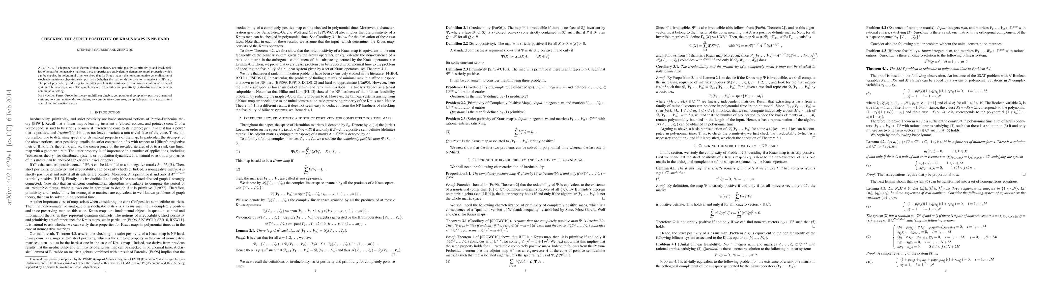 Checking strict positivity in Kraus maps is NP-hard, meaning it cannot be solved efficiently using computers, unlike similar problems for nonnegative matrices.