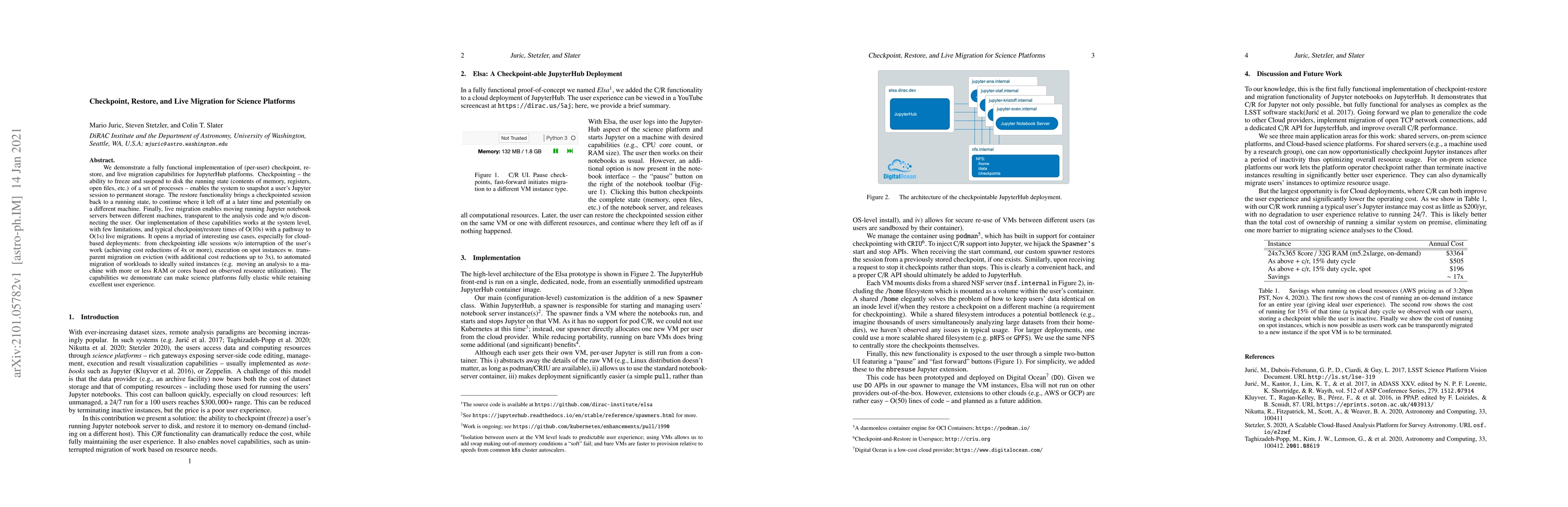 This paper presents a fully functional implementation of checkpoint, restore, and live migration capabilities for JupyterHub platforms, enabling users to seamlessly suspend, resume, and migrate their Jupyter sessions with minimal disruption. The system-level implementation supports cost reductions and resource optimization in cloud-based deployments, enhancing the elasticity of science platforms.
