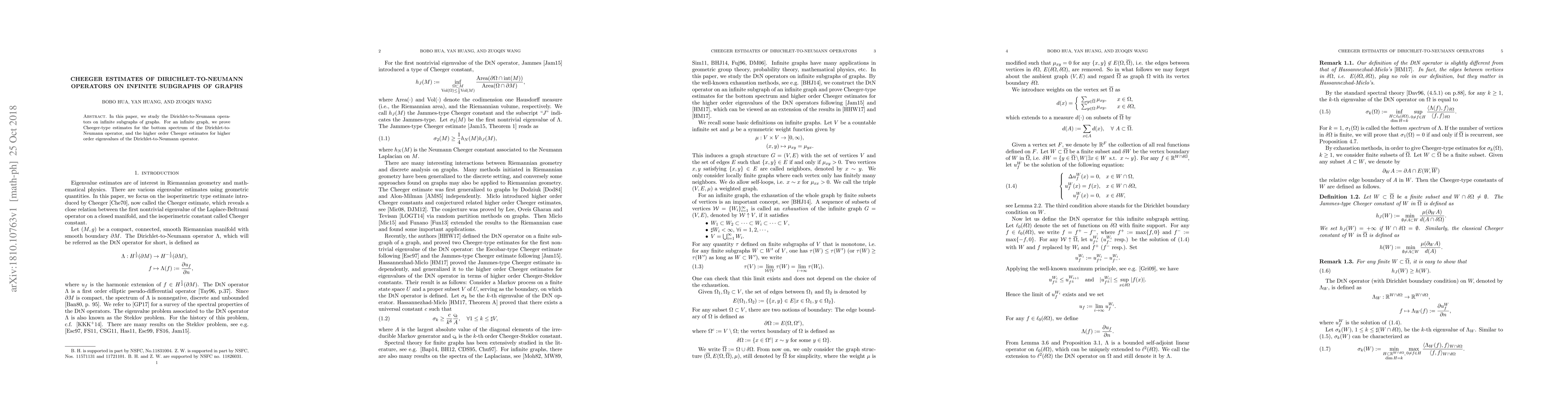This paper investigates Dirichlet-to-Neumann operators on infinite subgraphs of graphs, proving Cheeger-type estimates for the lowest spectrum and higher order Cheeger estimates for higher eigenvalues of these operators.