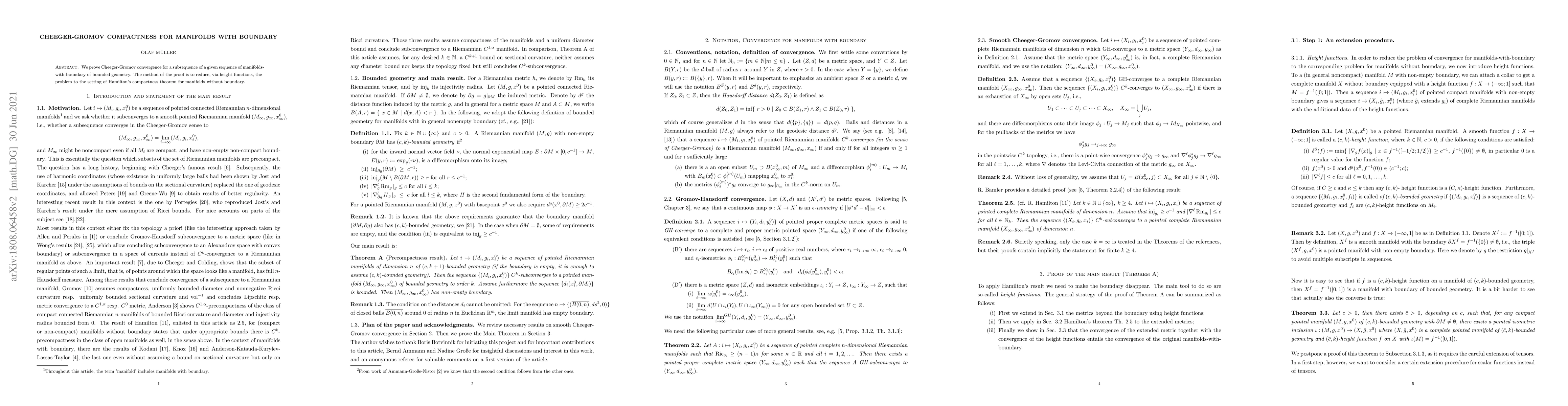 This paper establishes Cheeger-Gromov compactness for manifolds with boundary by demonstrating convergence for a subsequence of manifolds with bounded geometry, utilizing height functions to link the problem to Hamilton's compactness theorem for boundaryless manifolds.