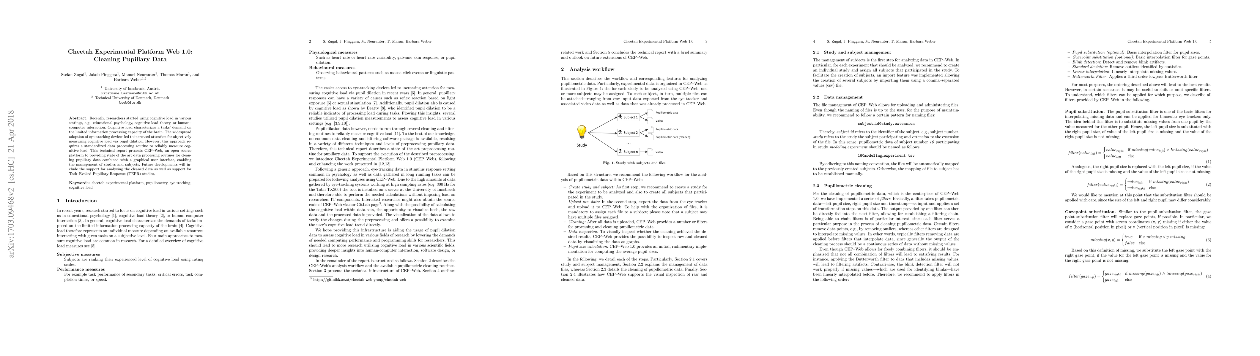 This paper introduces CEP-Web 1.0, an open-source platform designed to standardize and clean pupillary data for cognitive load measurement. It features advanced data processing routines and a graphical user interface for managing studies and subjects.