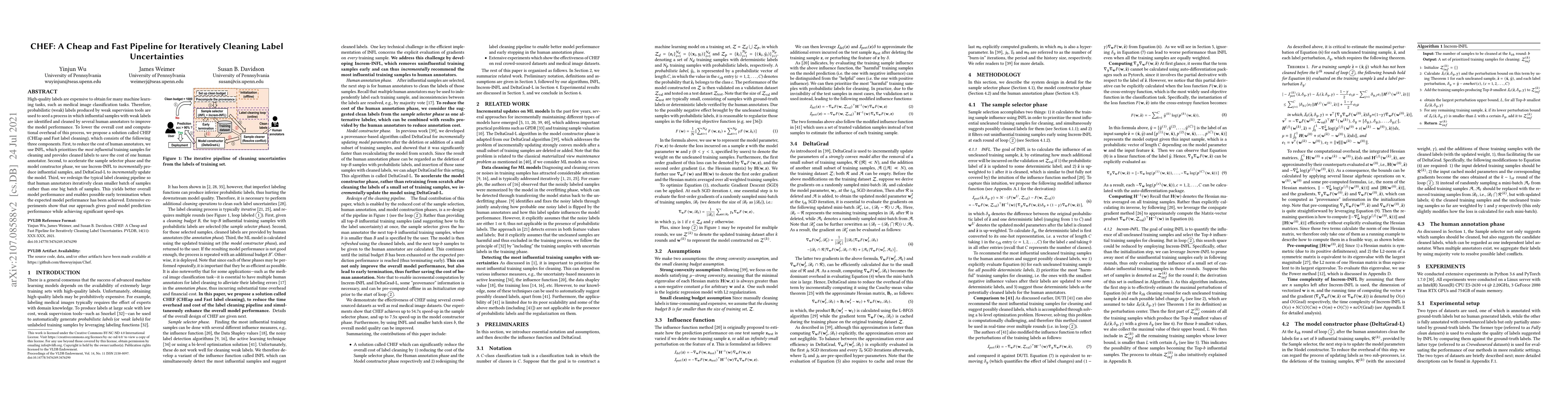 CHEF proposes a cost-effective and fast pipeline for cleaning label uncertainties in machine learning tasks, achieving good model performance while reducing computational overhead and human annotator costs.