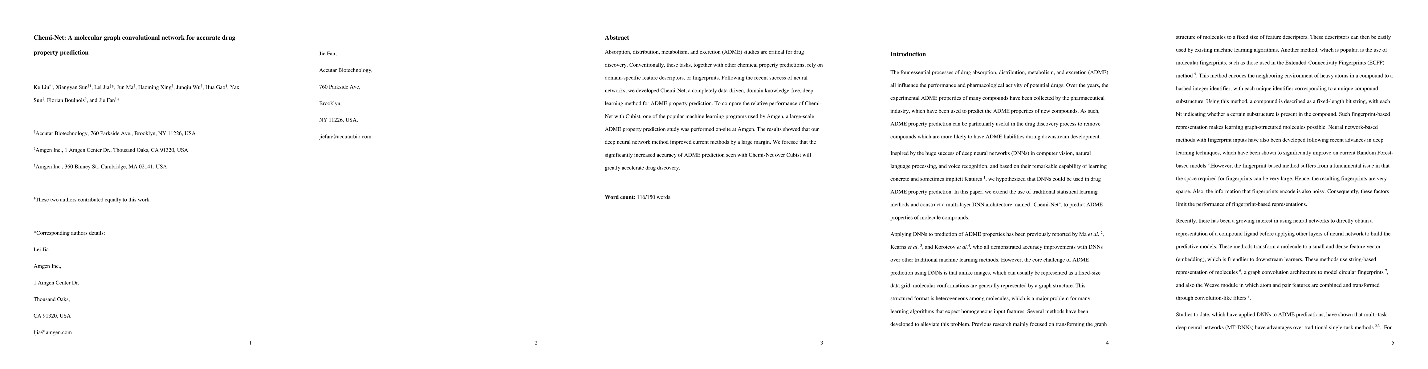 Chemi-Net, a graph convolutional network, offers a data-driven, domain knowledge-free approach for predicting drug properties related to ADME. Compared to Cubist, a popular machine learning tool, Chemi-Net demonstrated significantly improved accuracy in ADME property predictions, potentially accelerating drug discovery.