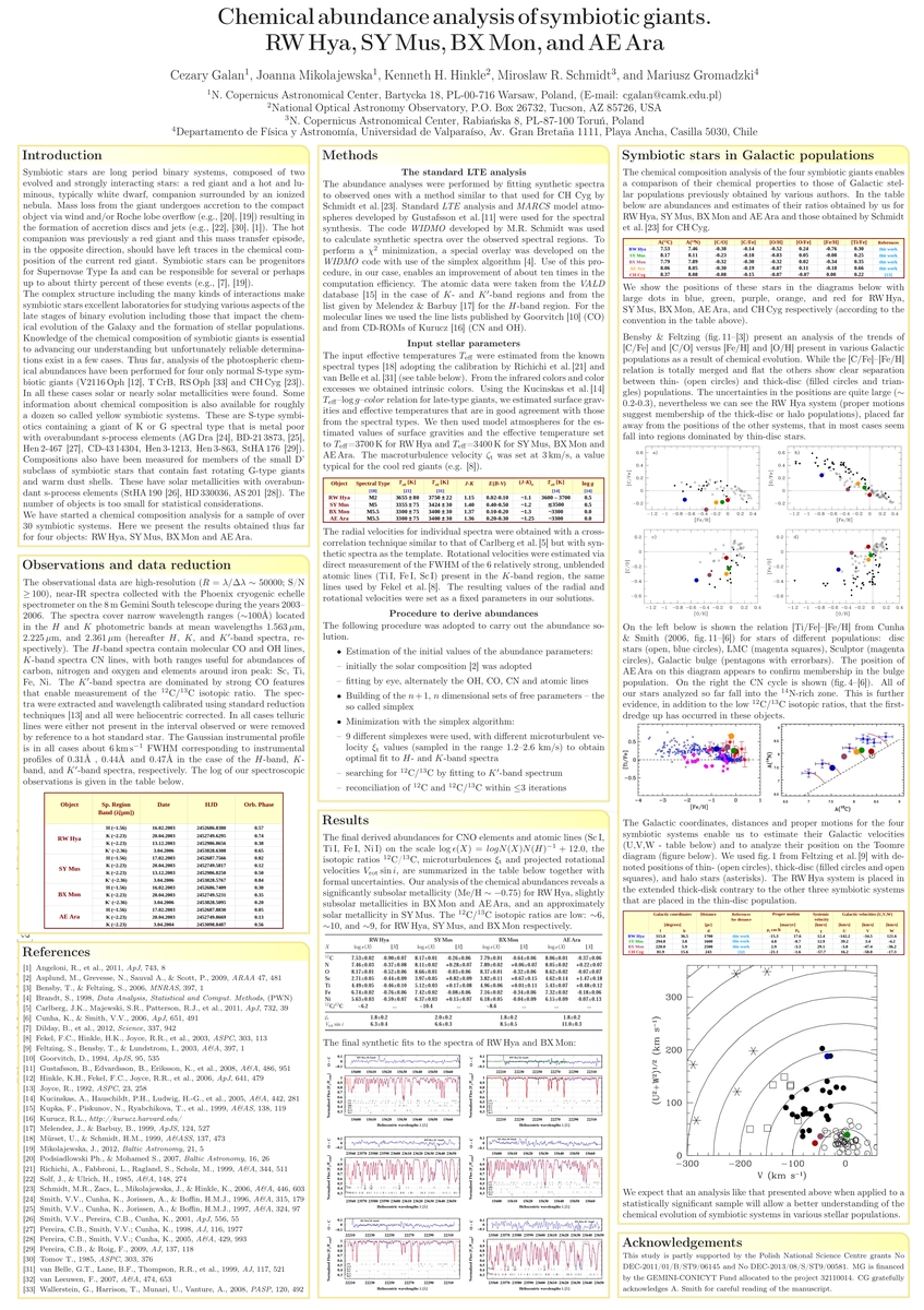 Researchers analyzed the chemical composition of four symbiotic giants using near-IR spectra to gain insights into their metallicity and isotopic ratios, shedding light on the Galaxy's chemical evolution.