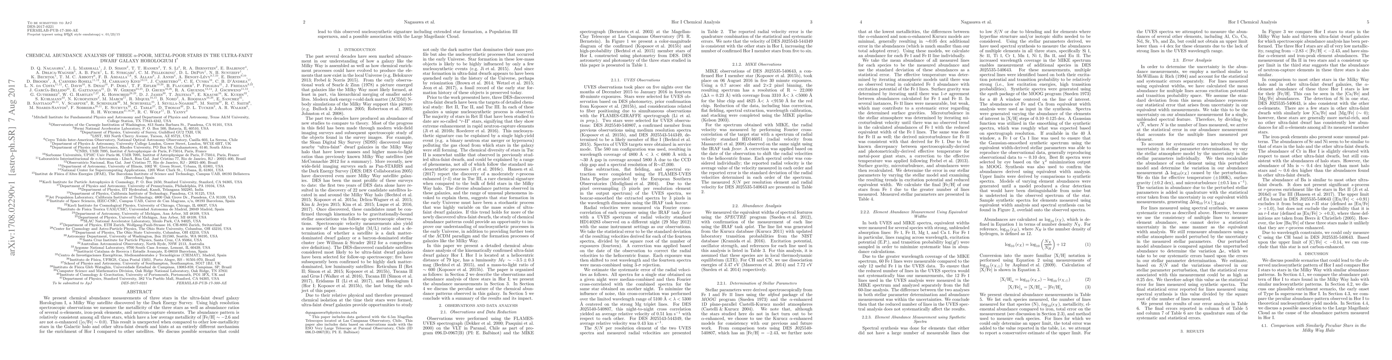 This study analyzes the chemical abundances of three metal-poor stars in the ultra-faint dwarf galaxy Horologium I, revealing a low average metallicity and no $\alpha$-enhancement. The consistent abundance pattern suggests a unique enrichment mechanism distinct from other low-metallicity stars, potentially involving extended star formation or a Population III supernova.