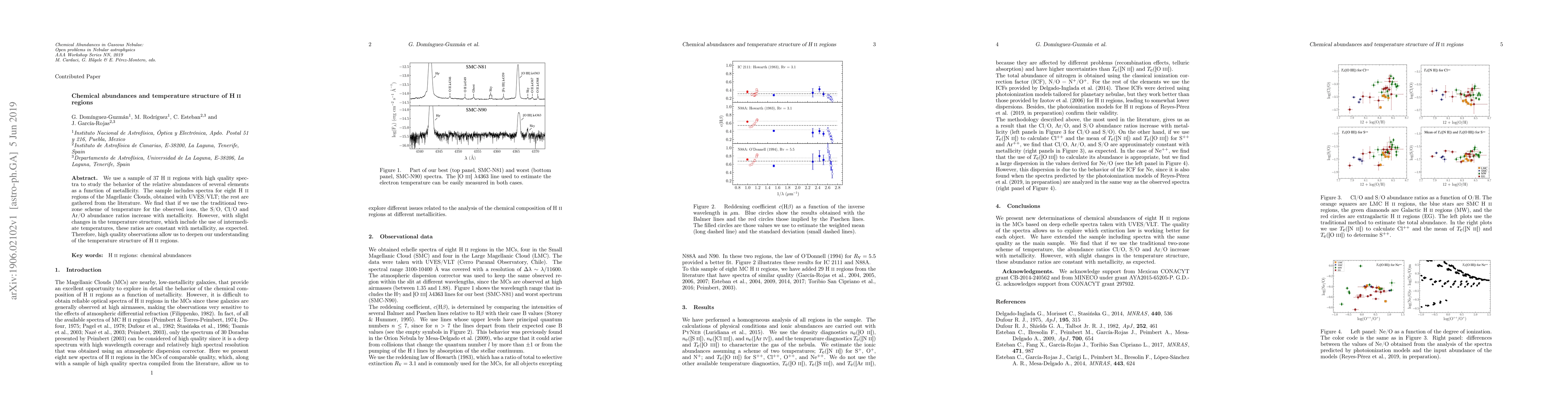 We use a sample of 37 H II regions with high quality spectra to study the behavior of the relative abundances of several elements as a function of metallicity. The sample includes spectra for eight H II regions of the Magellanic Clouds, obtained with UVES/VLT; the rest are gathered from the literature. We find that if we use the traditional twozone scheme of temperature for the observed ions, the S/O, Cl/O and Ar/O abundance ratios increase with metallicity. However, with slight changes in the temperature structure, which include the use of intermediate temperatures, these ratios are constant with metallicity, as expected. Therefore, high quality observations allow us to deepen our understanding of the temperature structure of H II regions.