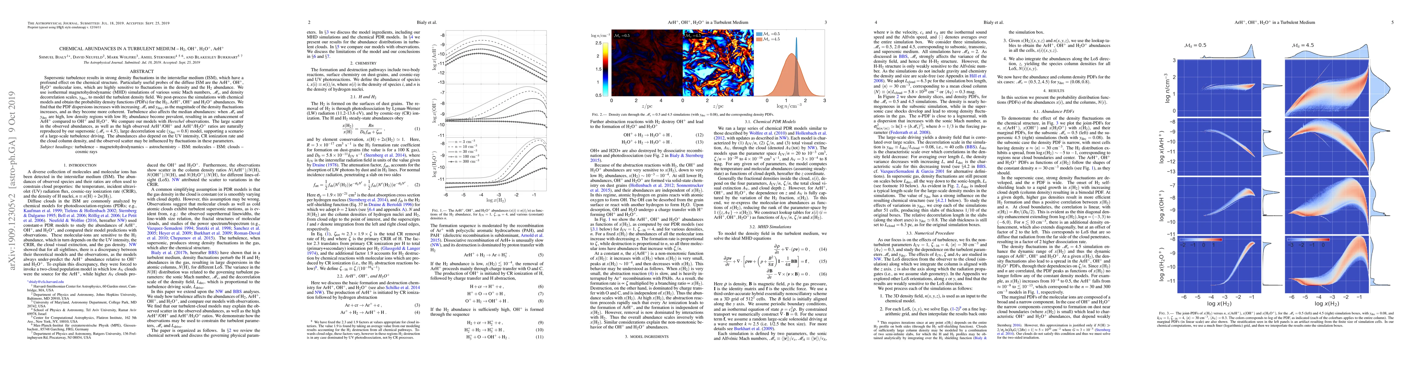 This paper investigates how supersonic turbulence in the interstellar medium affects chemical abundances of H$_2$, OH$^+$, H$_2$O$^+$, and ArH$^+$. Using MHD simulations and chemical models, it finds that turbulence increases the dispersion and alters the median of these abundances, particularly enhancing ArH$^+$ in low-density regions, which matches observed abundance ratios and scatter.