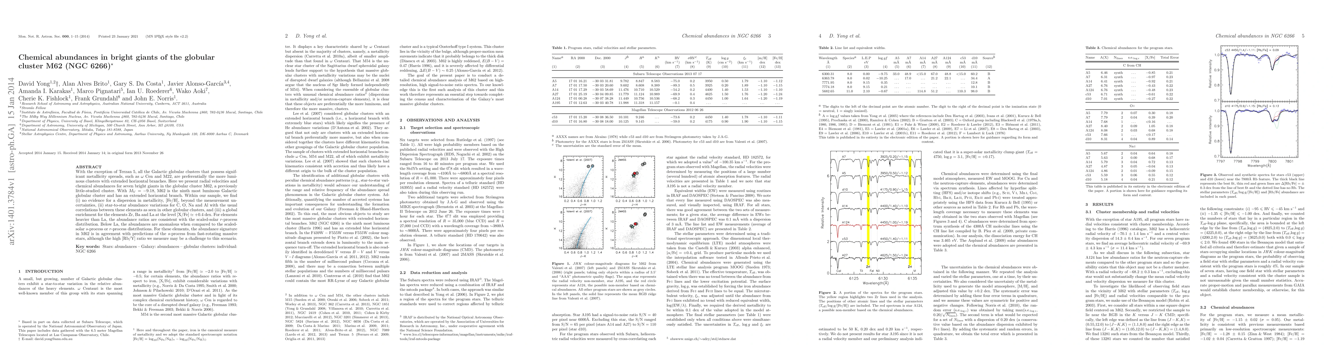 This paper investigates the chemical abundances in seven bright giants of the globular cluster M62, revealing no significant metallicity spread and consistent abundance variations for C, O, Na, and Al. It also finds global enrichment in Zr, Ba, and La, while elements heavier than La follow a scaled-solar $r$-process distribution, and lighter elements show s-process signatures from fast-rotating massive stars.