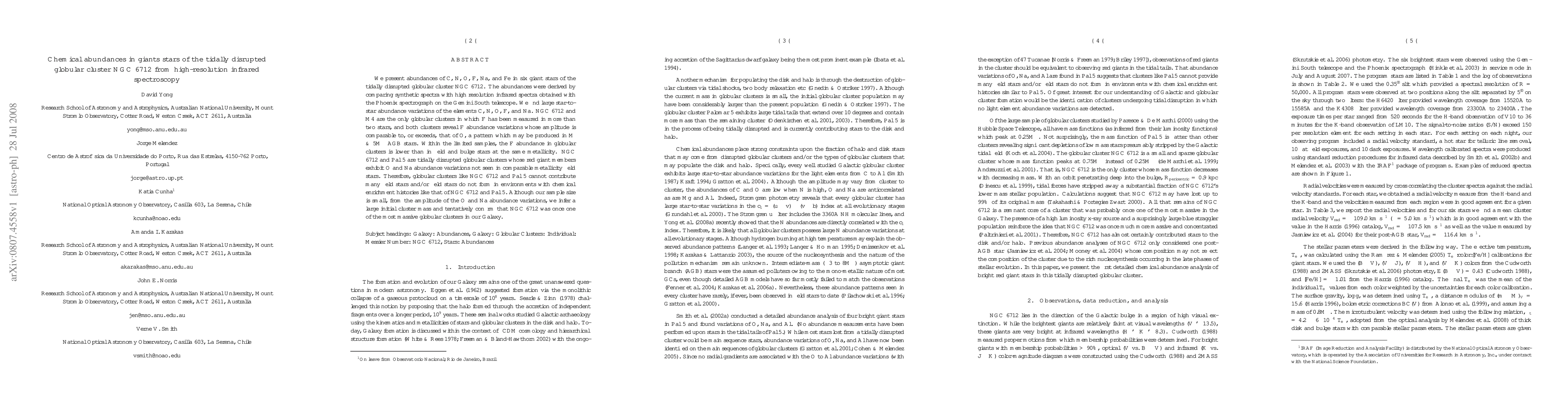 We present abundances of C, N, O, F, Na, and Fe in six giant stars of the tidally disrupted globular cluster NGC 6712. The abundances were derived by comparing synthetic spectra with high resolution infrared spectra obtained with the Phoenix spectrograph on the Gemini South telescope. We find large star-to-star abundance variations of the elements C, N, O, F, and Na. NGC 6712 and M4 are the only globular clusters in which F has been measured in more than two stars, and both clusters reveal F abundance variations whose amplitude is comparable to, or exceeds, that of O, a pattern which may be produced in M > 5M_sun AGB stars. Within the limited samples, the F abundance in globular clusters is lower than in field and bulge stars at the same metallicity. NGC 6712 and Pal 5 are tidally disrupted globular clusters whose red giant members exhibit O and Na abundance variations not seen in comparable metallicity field stars. Therefore, globular clusters like NGC 6712 and Pal 5 cannot contribute many field stars and/or field stars do not form in environments with chemical enrichment histories like that of NGC 6712 and Pal 5. Although our sample size is small, from the amplitude of the O and Na abundance variations, we infer a large initial cluster mass and tentatively confirm that NGC 6712 was once one of the most massive globular clusters in our Galaxy.