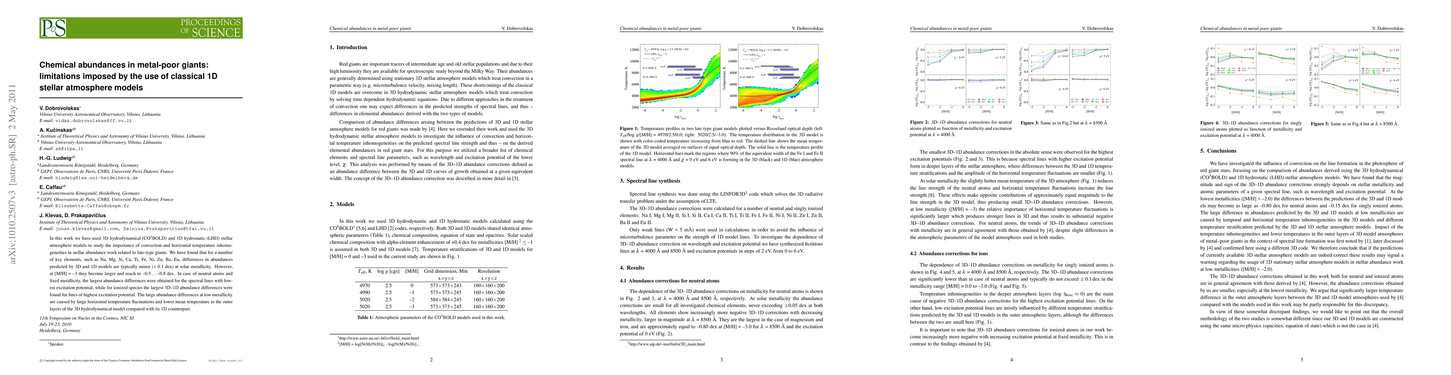 In this work we have used 3D hydrodynamical (CO5BOLD) and 1D hydrostatic (LHD) stellar atmosphere models to study the importance of convection and horizontal temperature inhomogeneities in stellar abundance work related to late-type giants. We have found that for a number of key elements, such as Na, Mg, Si, Ca, Ti, Fe, Ni, Zn, Ba, Eu, differences in abundances predicted by 3D and 1D models are typically minor (< 0.1 dex) at solar metallicity. However, at [M/H] = -3 they become larger and reach to -0.5...-0.8 dex. In case of neutral atoms and fixed metallicity, the largest abundance differences were obtained for the spectral lines with lowest excitation potential, while for ionized species the largest 3D-1D abundance differences were found for lines of highest excitation potential. The large abundance differences at low metallicity are caused by large horizontal temperature fluctuations and lower mean temperature in the outer layers of the 3D hydrodynamical model compared with its 1D counterpart.