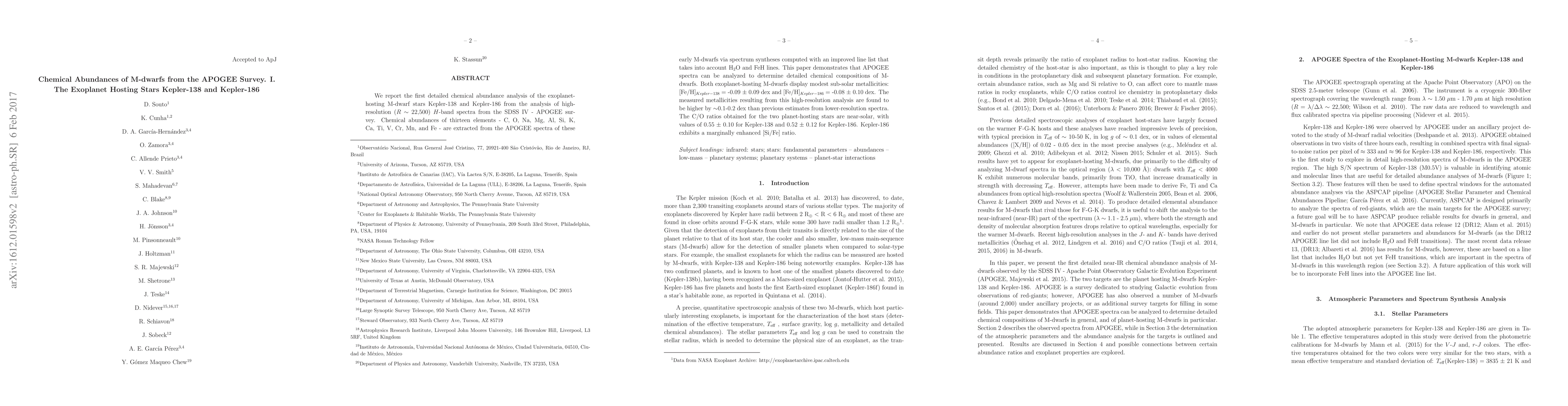 This study presents detailed chemical abundance analysis of the exoplanet-hosting M-dwarf stars Kepler-138 and Kepler-186 using high-resolution APOGEE spectra, revealing modest sub-solar metallicities and near-solar C/O ratios. The analysis shows improved accuracy over previous estimates.