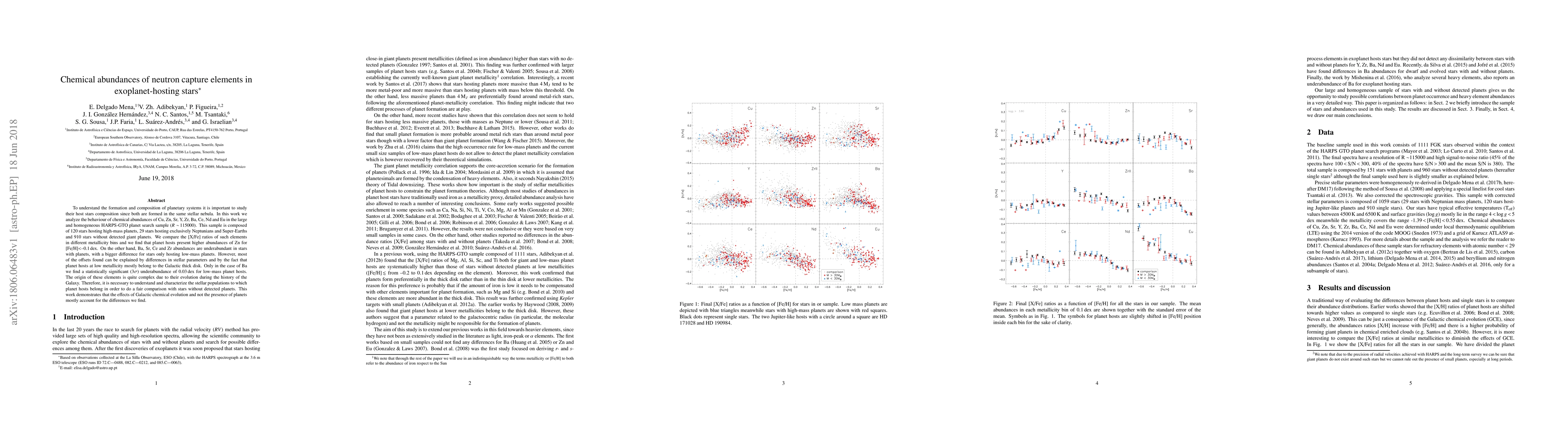 This study analyzes the chemical abundances of neutron capture elements in stars hosting exoplanets, finding higher Zn abundances in planet-hosting stars with low metallicity. It concludes that most differences in element abundances are due to Galactic chemical evolution and stellar population characteristics rather than the presence of planets.
