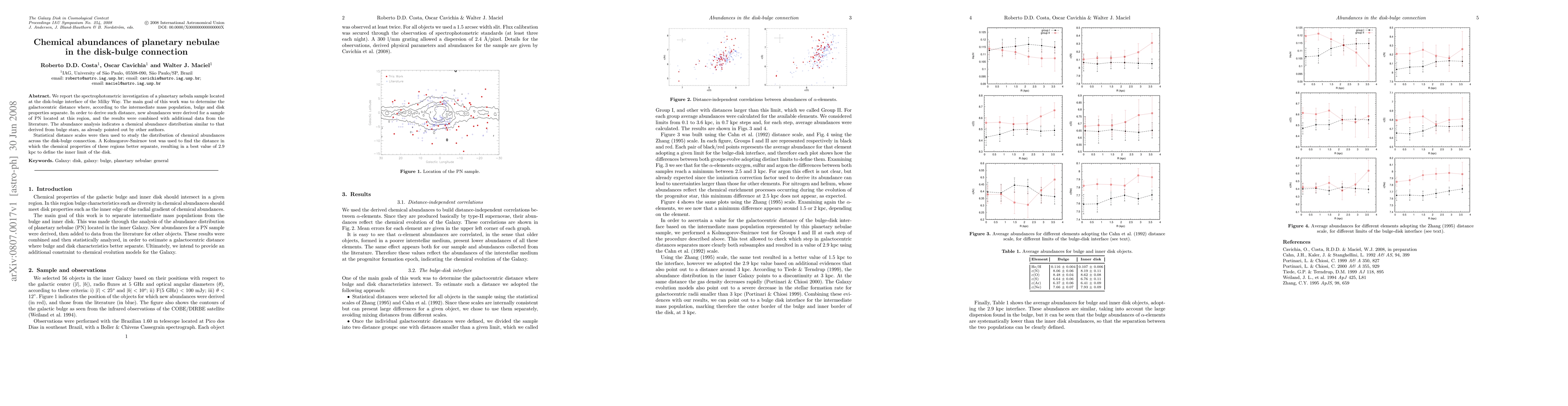 We report the spectrophotometric investigation of a planetary nebula sample located at the disk-bulge interface of the Milky Way. The main goal of this work was to determine the galactocentric distance where, according to the intermediate mass population, bulge and disk properties separate. In order to derive such distance, new abundances were derived for a sample of PN located at this region, and the results were combined with additional data from the literature. The abundance analysis indicates a chemical abundance distribution similar to that derived from bulge stars, as already pointed out by other authors. Statistical distance scales were then used to study the distribution of chemical abundances across the disk-bulge connection. A Kolmogorov-Smirnov test was used to find the distance in which the chemical properties of these regions better separate, resulting in a best value of 2.9 kpc to define the inner limit of the disk.