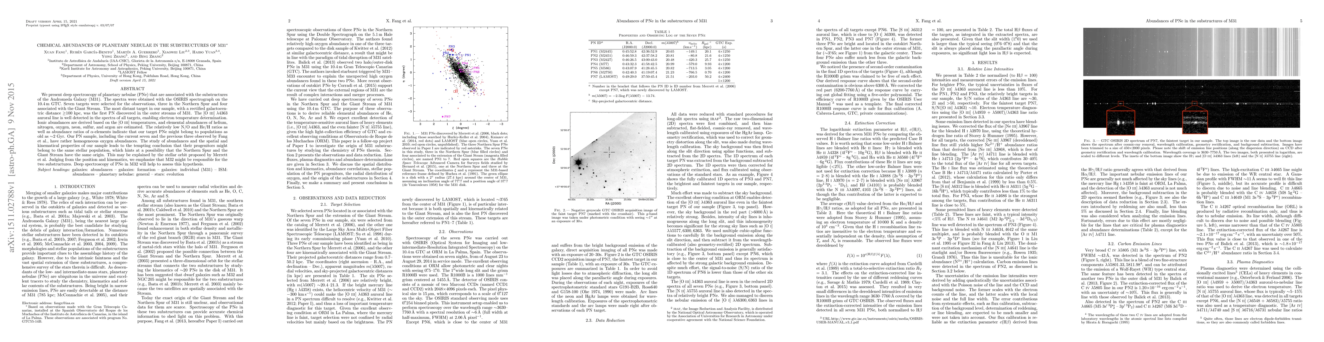 This study uses deep spectroscopy to analyze the chemical abundances of planetary nebulae in M31's Northern Spur and Giant Stream, revealing relatively low N/O and He/H ratios suggesting ages of about 2 Gyr. The findings hint at a common stellar origin for these substructures, potentially influenced by M32.