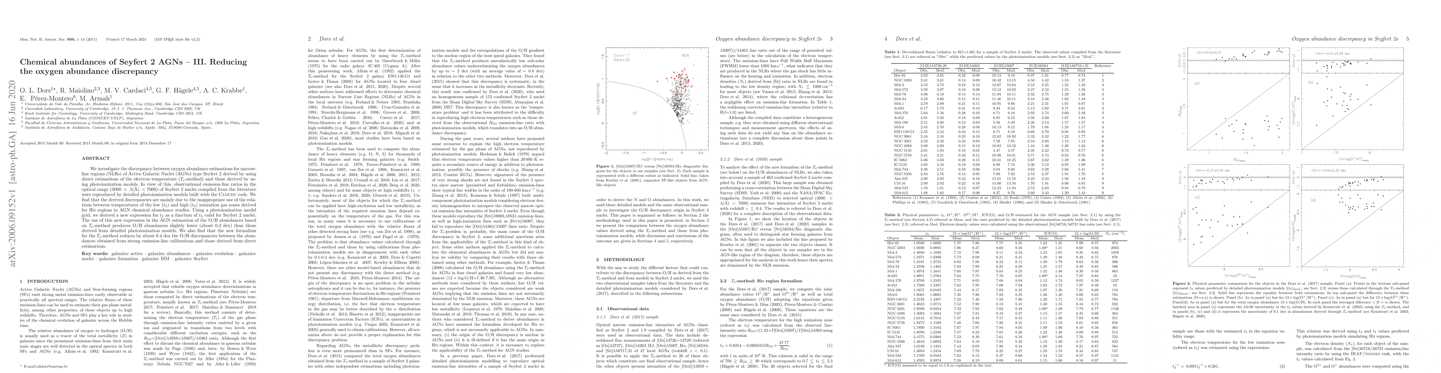 This paper addresses the discrepancy in oxygen abundance estimations for Seyfert 2 AGNs, finding that the Te-method overestimates abundances due to inappropriate temperature relations. A new expression for t2 as a function of t3, derived from photoionization models, reduces the O/H abundance discrepancy by about 0.4 dex.