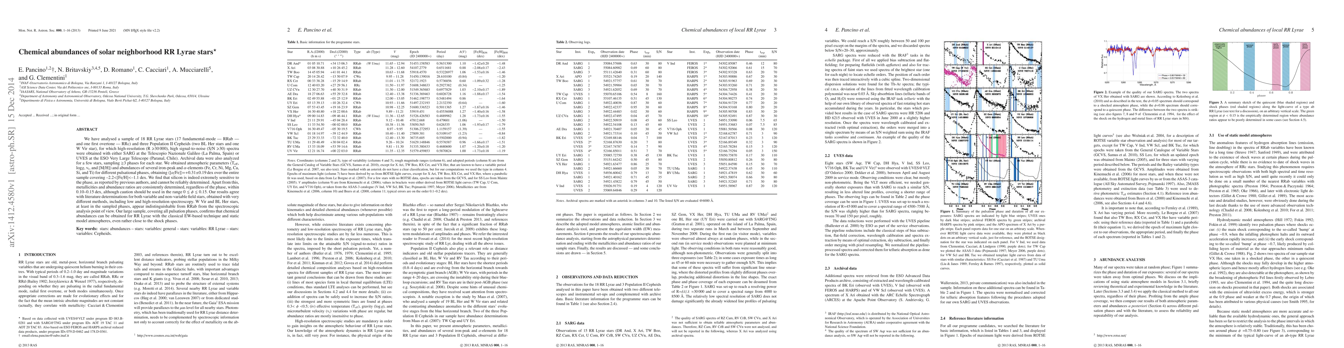 The study analyzed 18 RR Lyrae stars and 3 Population II Cepheids using high-resolution spectra, finding consistent metallicities and abundance ratios across pulsational phases. Silicon abundance was found unreliable due to phase sensitivity. The results align with literature for field stars, showing RRab, RRc, W Vir, and BL Her stars are spectroscopically indistinguishable. The research confirms that chemical abundances can be determined for RR Lyrae stars even near shock phases using classical EW-based techniques and static model atmospheres.