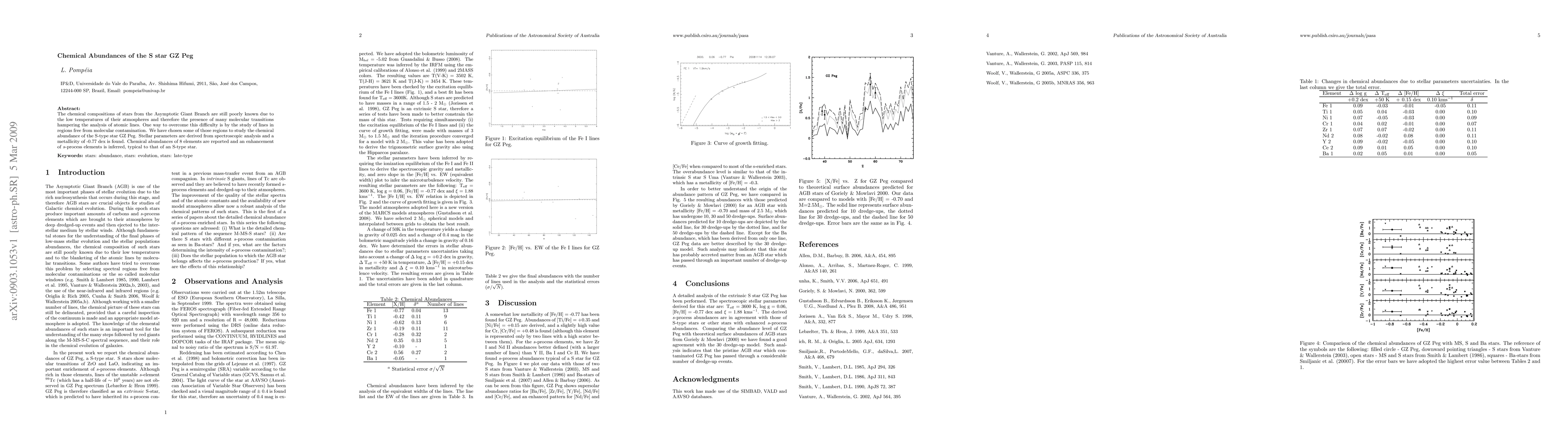 The chemical compositions of stars from the Asymptotic Giant Branch are still poorly known due to the low temperatures of their atmospheres and therefore the presence of many molecular transitions hampering the analysis of atomic lines. One way to overcome this difficulty is by the study of lines in regions free from molecular contamination. We have chosen some of those regions to study the chemical abundance of the S-type star GZ Peg. Stellar parameters are derived from spectroscopic analysis and a metallicity of -0.77 dex is found. Chemical abundances of 8 elements are reported and an enhancement of s-process elements is inferred, typical to that of an S-type star.