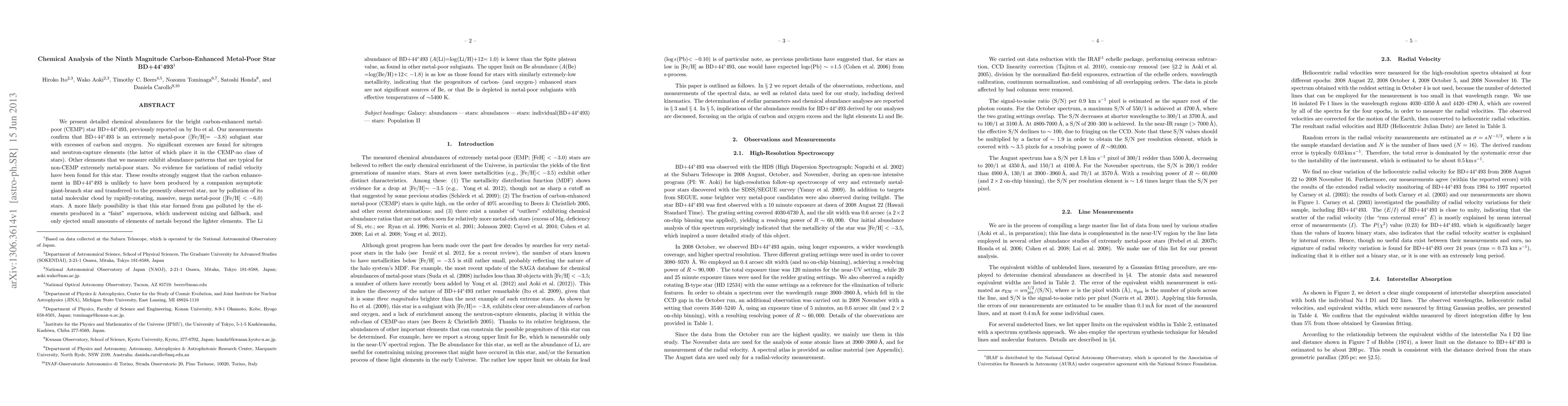 This paper provides detailed chemical abundances for the carbon-enhanced metal-poor star BD+44 493, revealing it to be extremely metal-poor with significant carbon and oxygen enhancements but no significant nitrogen or neutron-capture element excesses. The findings suggest that the carbon enhancement likely resulted from a "faint" supernova, rather than a companion star or natal cloud pollution.