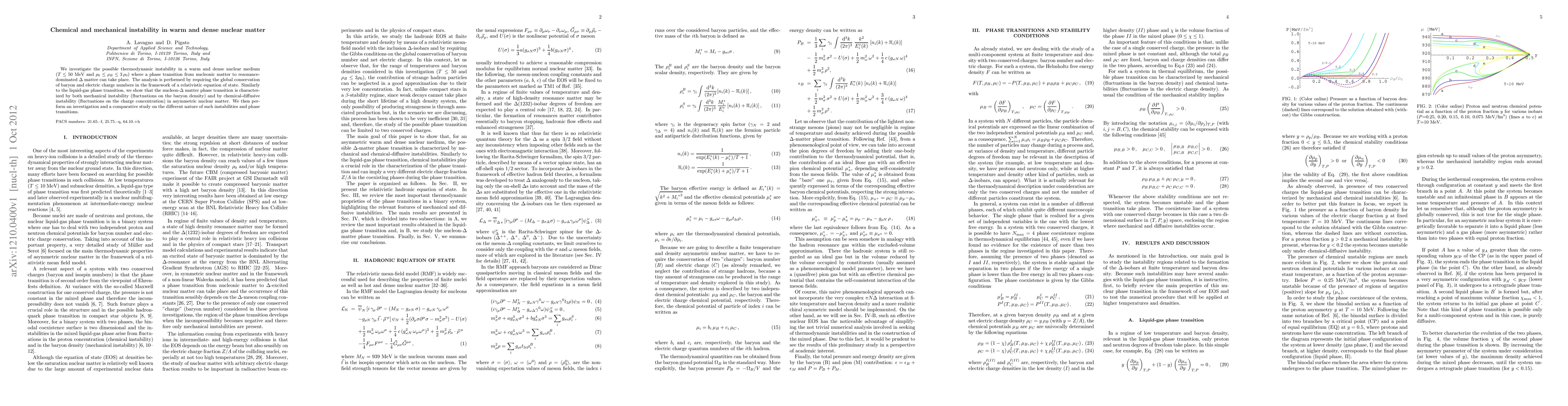 This paper explores the thermodynamic instability in warm and dense nuclear matter, focusing on the transition from nucleonic to Delta-matter. It identifies both mechanical and chemical-diffusive instabilities in asymmetric nuclear matter, akin to the liquid-gas phase transition, and compares their nature and implications for phase transitions.