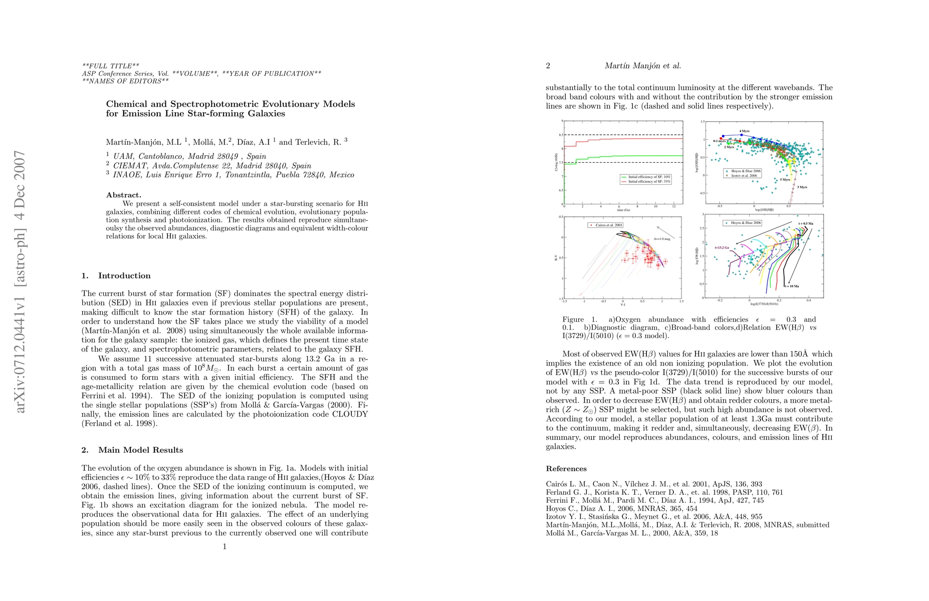 We present a self-consistent model under a star-bursting scenario for H{\sc ii} galaxies, combining different codes of chemical evolution, evolutionary population synthesis and photoionization. The results obtained reproduce simultaneoulsy the observed abundances, diagnostic diagrams and equivalent width-colour relations for local H{\sc ii} galaxies.