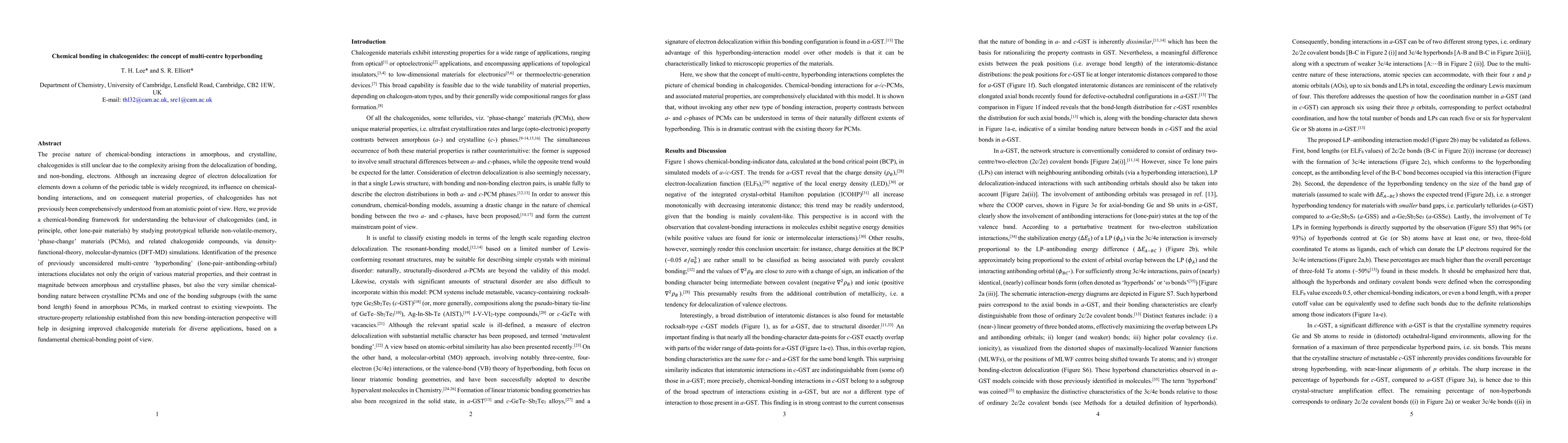 This research utilizes DFT-MD simulations to reveal 'multi-centre hyperbonding' in chalcogenides, explaining their material properties and bridging amorphous/crystalline phase contrasts. This bonding framework aids in designing enhanced chalcogenide materials for varied applications.
