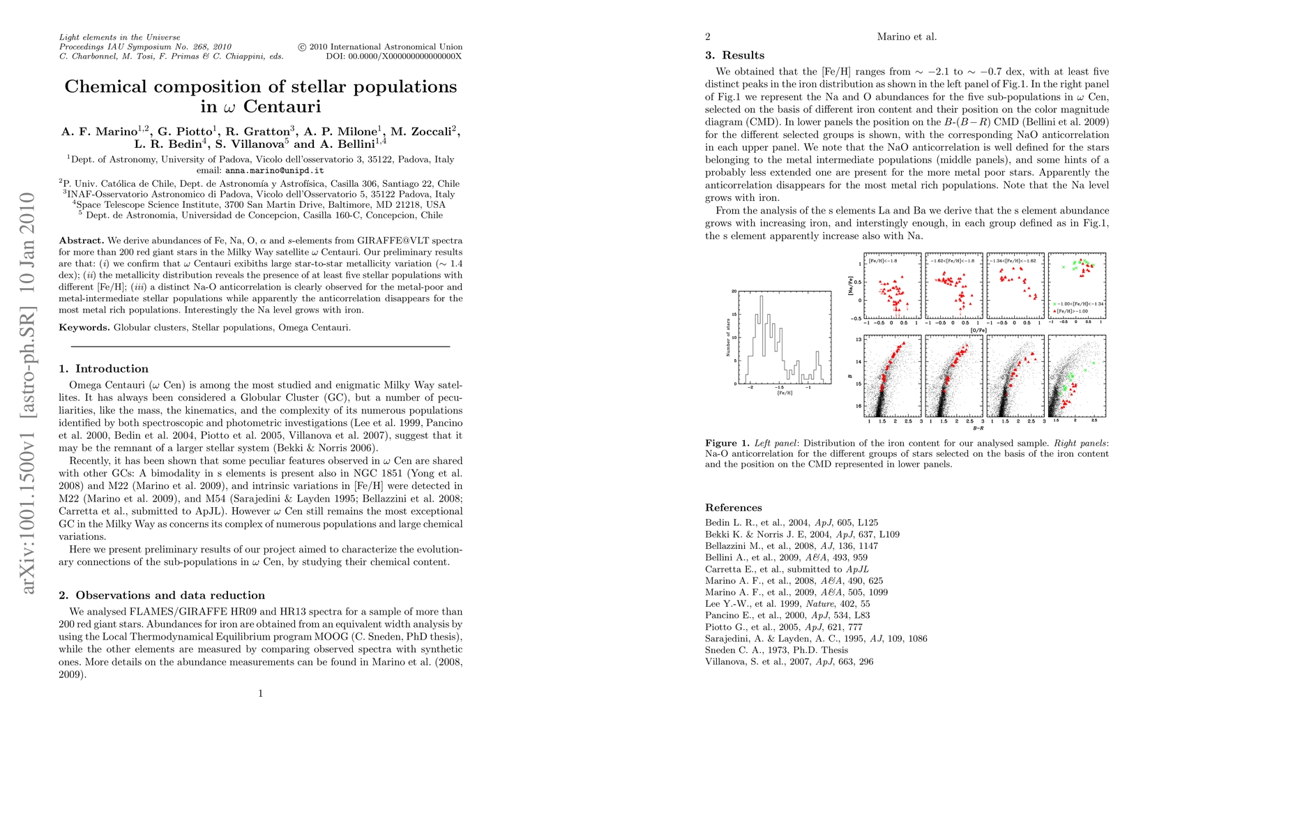This study analyzes the chemical composition of Omega Centauri using GIRAFFE@VLT spectra, revealing significant star-to-star metallicity variations and identifying at least five distinct stellar populations. A notable Na-O anticorrelation is observed in metal-poor and metal-intermediate populations, which diminishes in the most metal-rich groups.