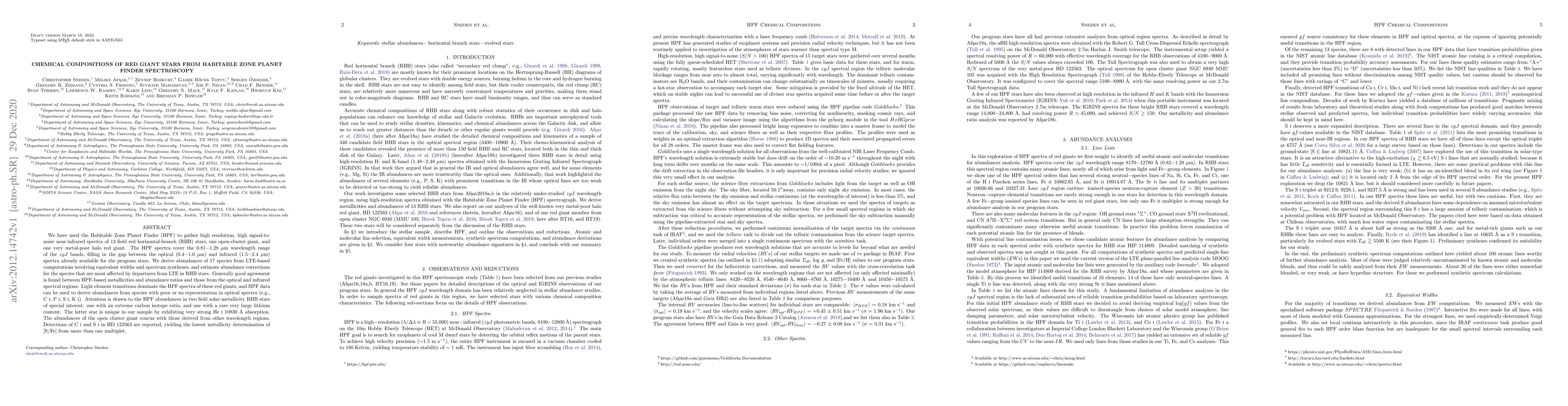 This study uses the Habitable Zone Planet Finder (HPF) to obtain high-resolution near-infrared spectra of various red giant stars, deriving abundances for 17 species and highlighting the unique chemical compositions of two field RHB stars, including one with an extreme carbon isotope ratio and another with a rare large lithium content.