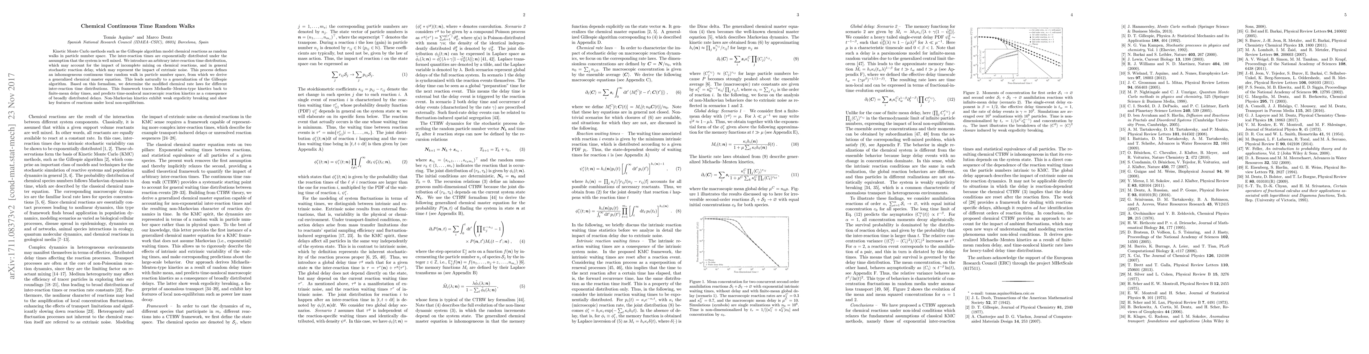 Kinetic Monte Carlo methods such as the Gillespie algorithm model chemical reactions as random walks in particle number space. The inter-reaction times are exponentially distributed under the assumption that the system is well mixed. We introduce an arbitrary inter-reaction time distribution, which may account for the impact of incomplete mixing on chemical reactions, and in general stochastic reaction delay, which may represent the impact of extrinsic noise. This process defines an inhomogeneous continuous time random walk in particle number space, from which we derive a generalized chemical master equation. This leads naturally to a generalization of the Gillespie algorithm. Based on this formalism, we determine the modified chemical rate laws for different inter-reaction time distributions. This framework traces Michaelis--Menten-type kinetics back to finite-mean delay times, and predicts time-nonlocal macroscopic reaction kinetics as a consequence of broadly distributed delays. Non-Markovian kinetics exhibit weak ergodicity breaking and show key features of reactions under local non-equilibrium.