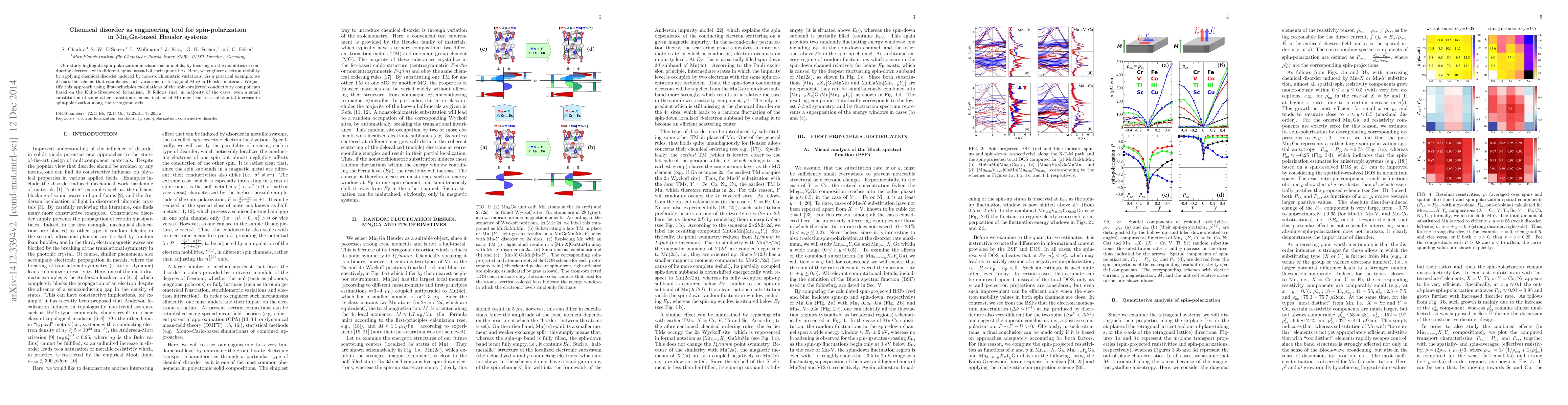 Our study highlights spin-polarization mechanisms in metals, by focusing on the mobilities of conducting electrons with different spins instead of their quantities. Here, we engineer electron mobility by applying chemical disorder induced by non-stoichiometric variations. As a practical example, we discuss the scheme that establishes such variations in tetragonal Mn3Ga Heusler material. We justify this approach using first-principles calculations of the spin-projected conductivity components based on the Kubo-Greenwood formalism. It follows that, in majority of the cases, even a small substitution of some other transition element instead of Mn may lead to a substantial increase in spin-polarization along the tetragonal axis.