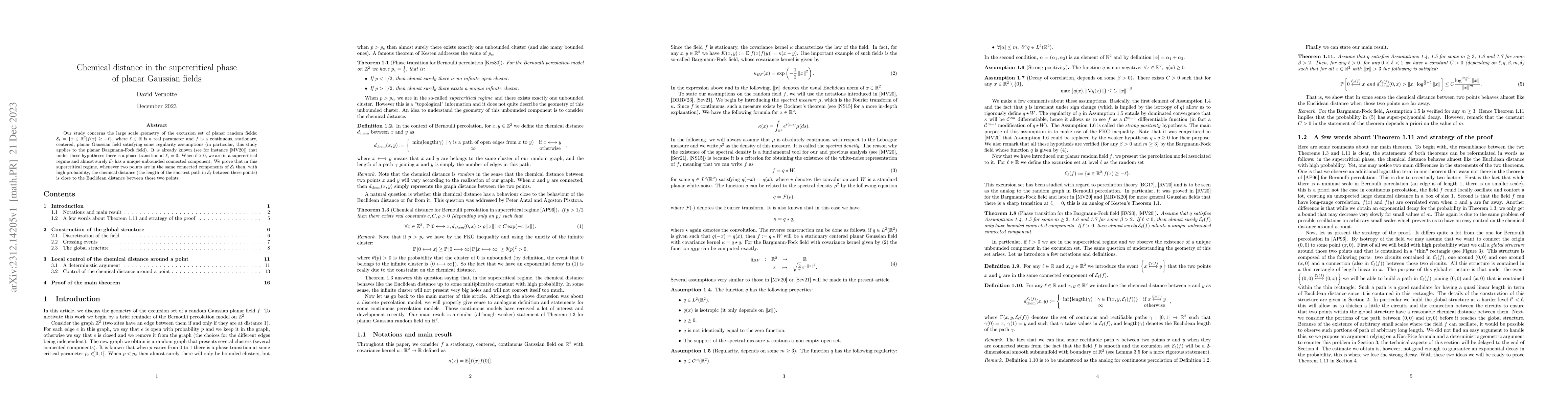 This paper investigates the large-scale geometry of the excursion set of planar Gaussian fields, focusing on the supercritical phase where the chemical distance between points in the same connected component is shown to be close to the Euclidean distance, indicating a phase transition at ${\ell}$c = 0.