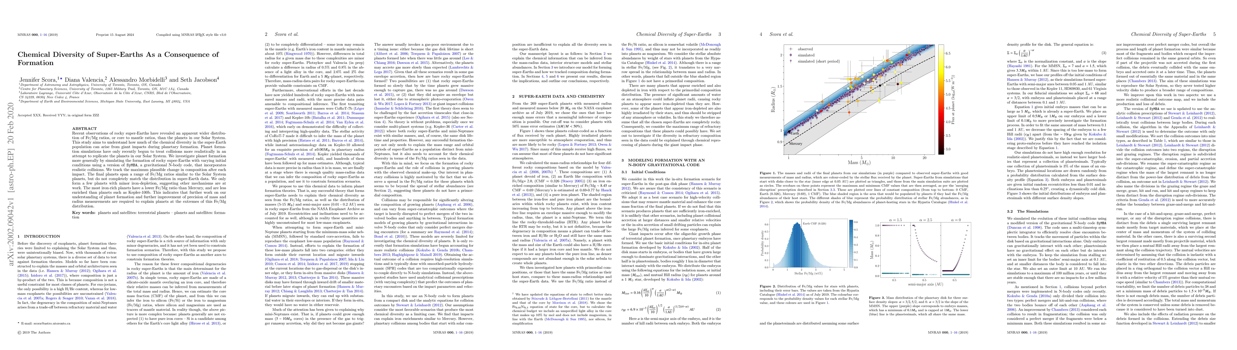 This study uses simulations to explore how giant impacts during planetary formation contribute to the chemical diversity of super-Earths, finding that while impacts can alter Fe/Mg ratios, they do not fully explain the observed distribution. Further research is needed to account for planets with extreme Fe/Mg ratios.