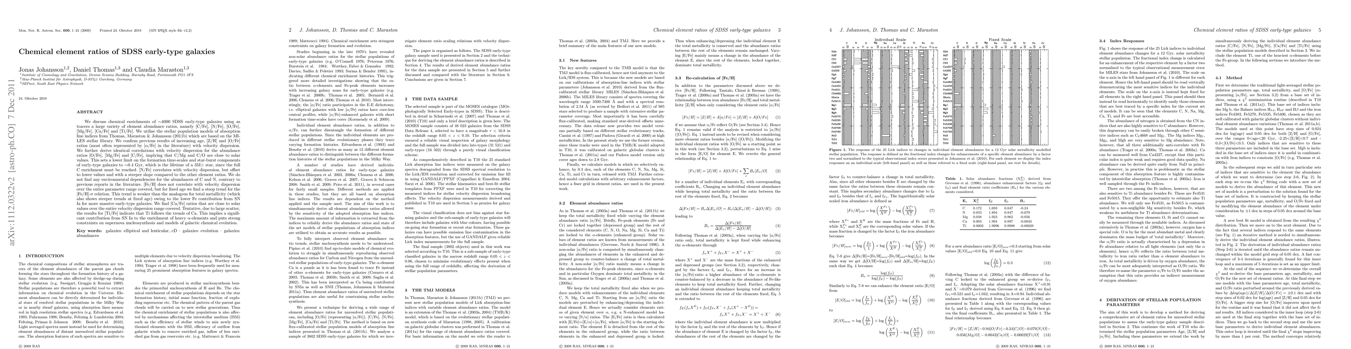 We discuss chemical enrichments of ~4000 SDSS early-type galaxies using as tracers the element abundance ratios [C/Fe], [N/Fe], [O/Fe], [Mg/Fe], [Ca/Fe] and [Ti/Fe]. We utilise the stellar population models of absorption line indices from Thomas, Maraston & Johansson (2011) which are based on the MILES stellar library. We confirm previous results of increasing age, [Z/H] and [O/Fe] ratios (most often represented by [{\alpha}/Fe] in the literature) with velocity dispersion. We further derive identical correlations with velocity dispersion for the abundance ratios [O/Fe], [Mg/Fe] and [C/Fe], implying that C/Mg and C/O are close to solar values. This sets a lower limit on the formation time-scales and star-burst components of early-type galaxies to ~0.4 Gyr, which is the lifetime of a 3Msun star, since the full C enrichment must be reached. [N/Fe] correlates with velocity dispersion, but offset to lower values and with a steeper slope compared to the other element ratios. We do not find any environmental dependencies for the abundances of C and N, contrary to previous reports in the literature. [Fe/H] does not correlate with velocity dispersion over the entire parameter range covered, but for fixed age we find a steep trend for the [Fe/H]-{\sigma} relation. This trend is weaker than the analogous for total metallicity (which also shows steeper trends at fixed age) owing to the lower Fe contribution from SN Ia for more massive early-type galaxies. We find [Ca/Fe] ratios that are close to solar values over the entire velocity dispersion range covered. Tentative, due to large scatter, the results for [Ti/Fe] indicate that Ti follows the trends of Ca. This implies a significant contribution from SN Ia to the enrichment of heavy {\alpha}-elements and puts strong constraints on supernova nucleosynthesis and models of galactic chemical evolution.