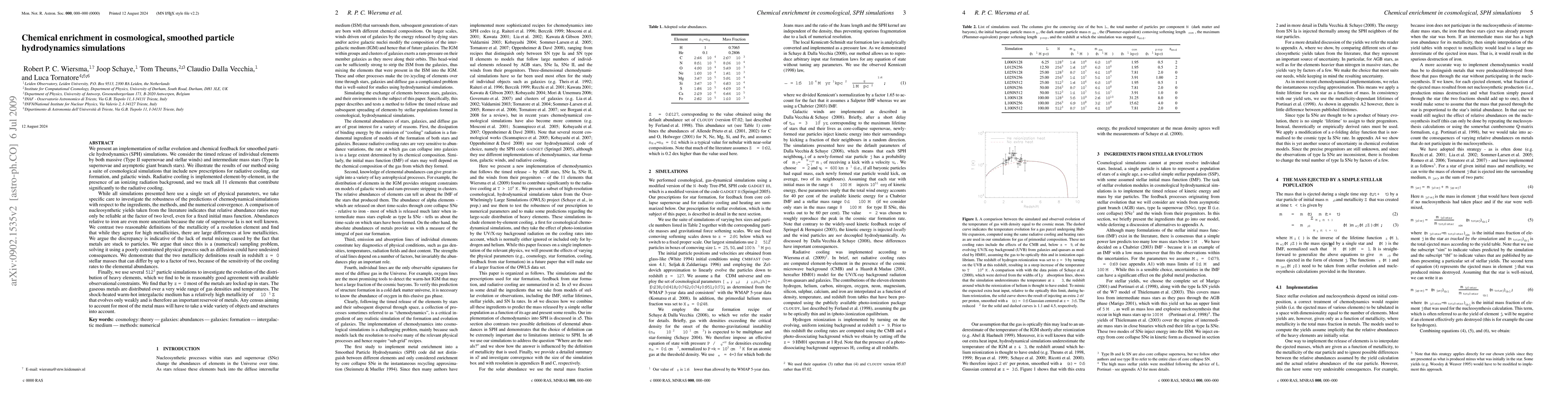 This paper presents a new implementation of stellar evolution and chemical feedback in smoothed particle hydrodynamics simulations, focusing on the release of elements from supernovae and stellar winds. It highlights discrepancies in metallicity definitions due to numerical sampling issues, and shows that by z = 0, most metals are in stars, while the warm-hot intergalactic medium maintains a relatively high metallicity.