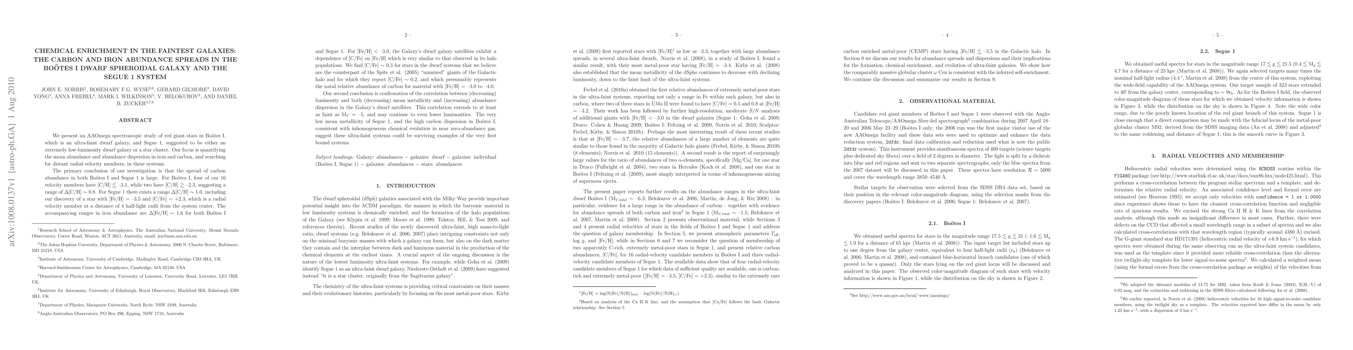 This paper investigates the carbon and iron abundance spreads in the ultra-faint dwarf galaxies Bootes I and Segue 1, revealing significant carbon abundance dispersion and low mean metallicity. The study suggests these systems may represent the earliest bound structures in the universe.