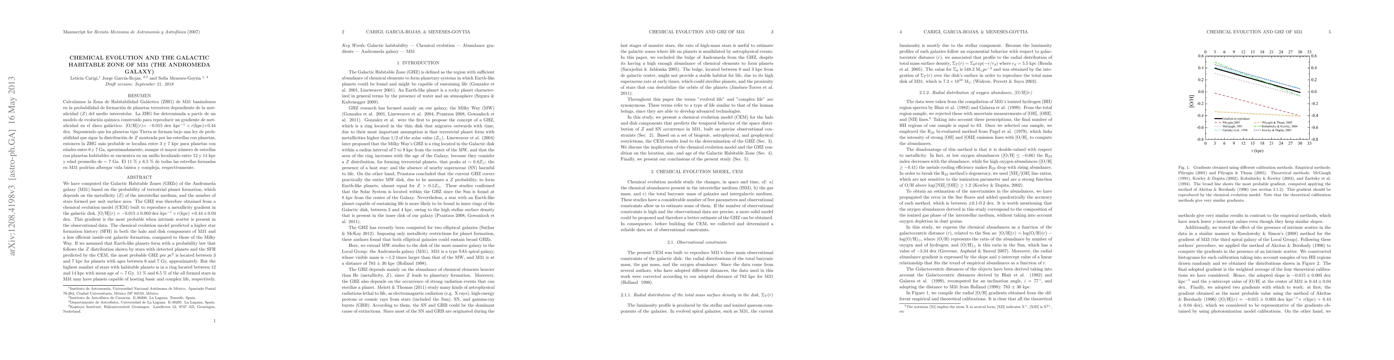 This study computes the Galactic Habitable Zones (GHZs) in the Andromeda Galaxy (M31) based on chemical evolution and metallicity gradients, predicting a probable GHZ between 3 and 7 kpc for planets aged 6-7 Gy. The highest number of stars with habitable planets is found in a ring from 12 to 14 kpc, with 11% and 6.5% of M31's stars potentially hosting basic and complex life, respectively.