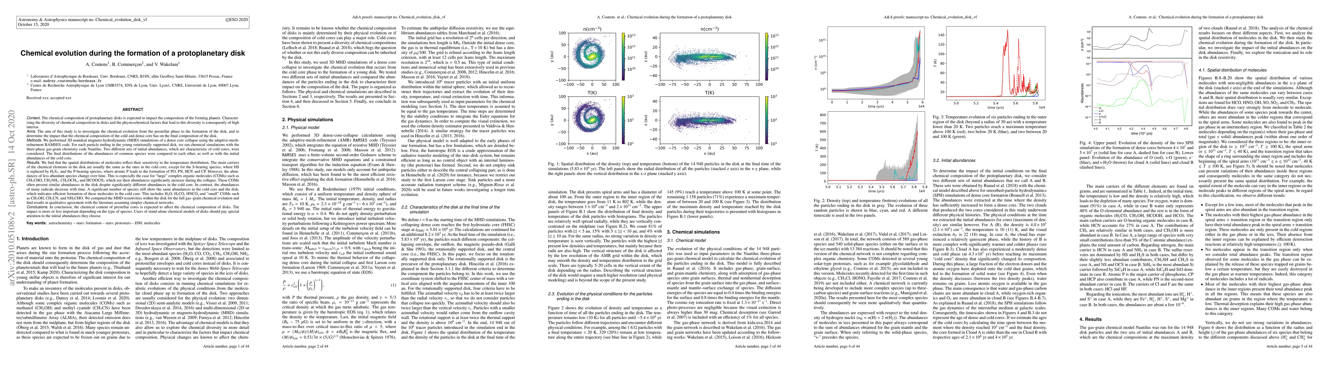 (Abridged) The aim of this study is to investigate the chemical evolution from the prestellar phase to the formation of the disk, and to determine the impact that the chemical composition of the cold and dense core has on the final composition of the disk. We performed 3D nonideal magneto-hydrodynamic (MHD) simulations of a dense core collapse using the adaptive-mesh-refinement RAMSES code. For each particle ending in the young rotationally supported disk, we ran chemical simulations with the three-phase gas-grain chemistry code Nautilus. Two different sets of initial abundances, which are characteristic of cold cores, were considered. The final distributions of the abundances of common species were compared to each other, as well as with the initial abundances of the cold core. We find that the spatial distributions of molecules reflect their sensitivity to the temperature distribution. The main carriers of the chemical elements in the disk are usually the same as the ones in the cold core, except for the S-bearing species, where HS is replaced by H$_2$S$_3$, and the P-bearing species, where atomic P leads to the formation of PO, PN, HCP, and CP. However, the abundances of less abundant species change over time. This is especially the case for "large" complex organic molecules (COMs) such as CH$_3$CHO, CH$_3$NH$_2$, CH$_3$OCH$_3$, and HCOOCH$_3$ which see their abundances significantly increase during the collapse. These COMs often present similar abundances in the disk despite significantly different abundances in the cold core. In contrast, the abundances of many radicals decrease with time. A significant number of species still show the same abundances in the cold core and the disk, which indicates efficient formation of these molecules in the cold core. This includes H$_2$O, H$_2$CO, HNCO, and "small" COMs such as CH$_3$OH, CH$_3$CN, and NH$_2$CHO.