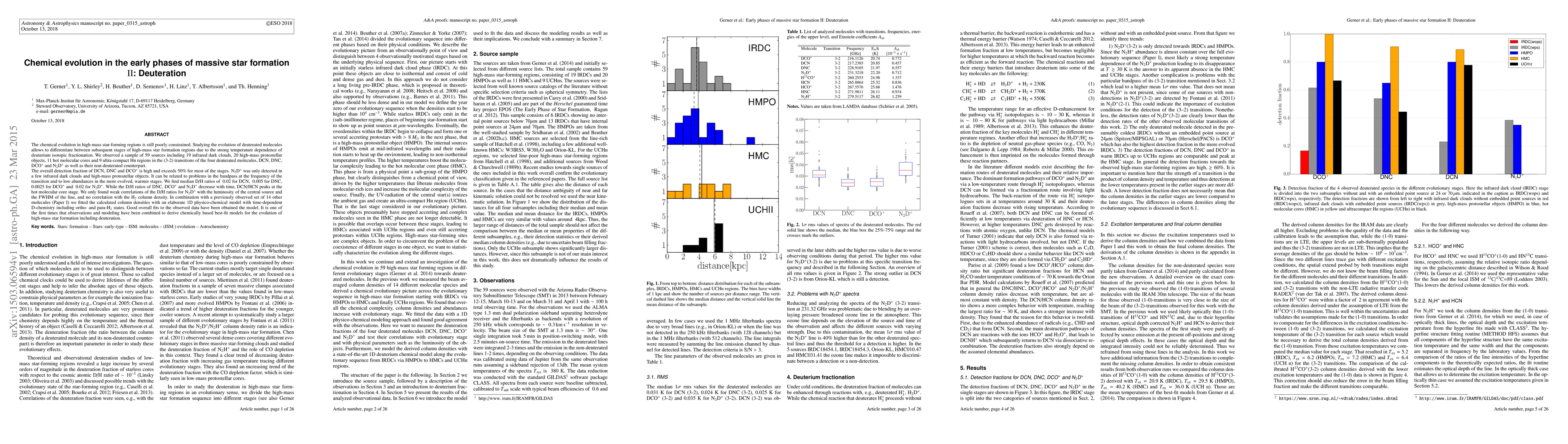 This paper investigates the chemical evolution of high-mass star-forming regions through the study of deuterated molecules, finding high detection fractions for DCN, DNC, and DCO+. The study reveals decreasing D/H ratios over time for most molecules except for DCN/HCN, which peaks at the hot molecular core stage, providing insights into the chemical processes during different stages of star formation.