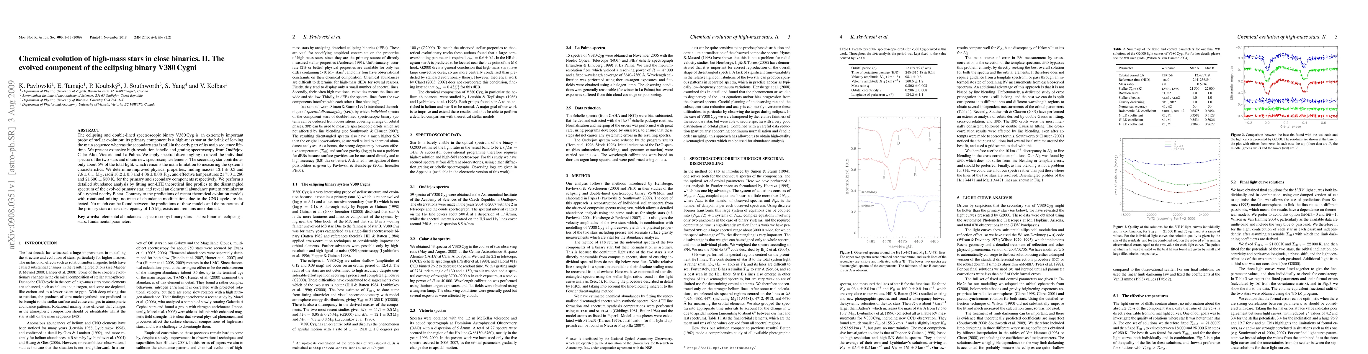 This paper investigates the eclipsing binary V380 Cygni, focusing on the evolved primary star nearing the end of its main sequence and the secondary star still in its early main sequence phase. Using high-resolution spectroscopy, the authors disentangle the individual spectra to determine improved physical properties and elemental abundances, revealing discrepancies between observed and theoretical predictions of stellar evolution.