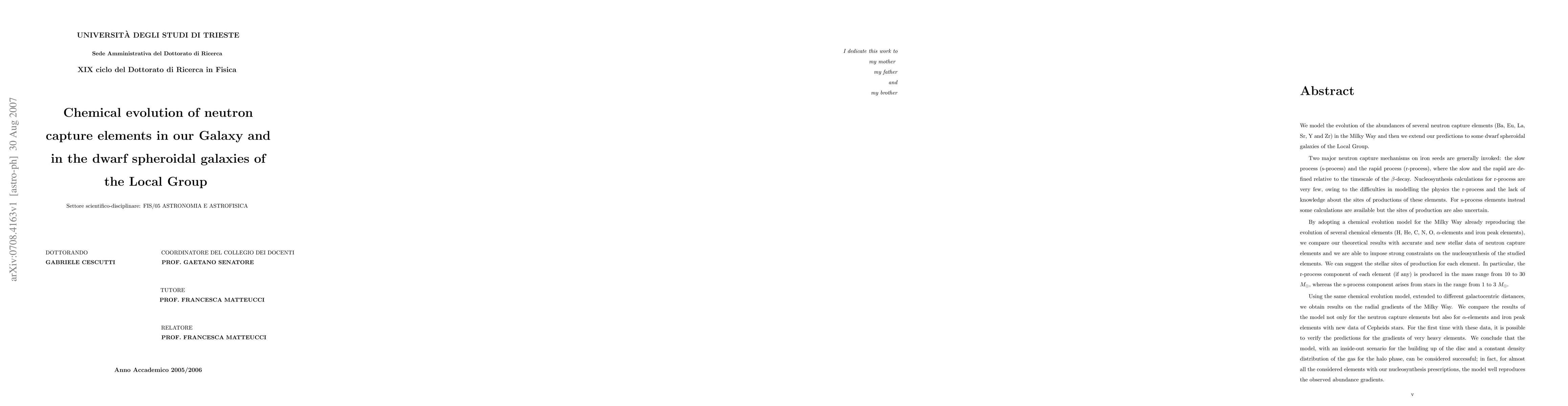 This paper uses a chemical evolution model to study neutron capture elements in the Milky Way and Local Group dwarf galaxies, identifying stellar sites for r-process and s-process production. It explains the scatter in neutron capture elements and suggests that dwarf spheroidal galaxies did not contribute to the Milky Way's formation.