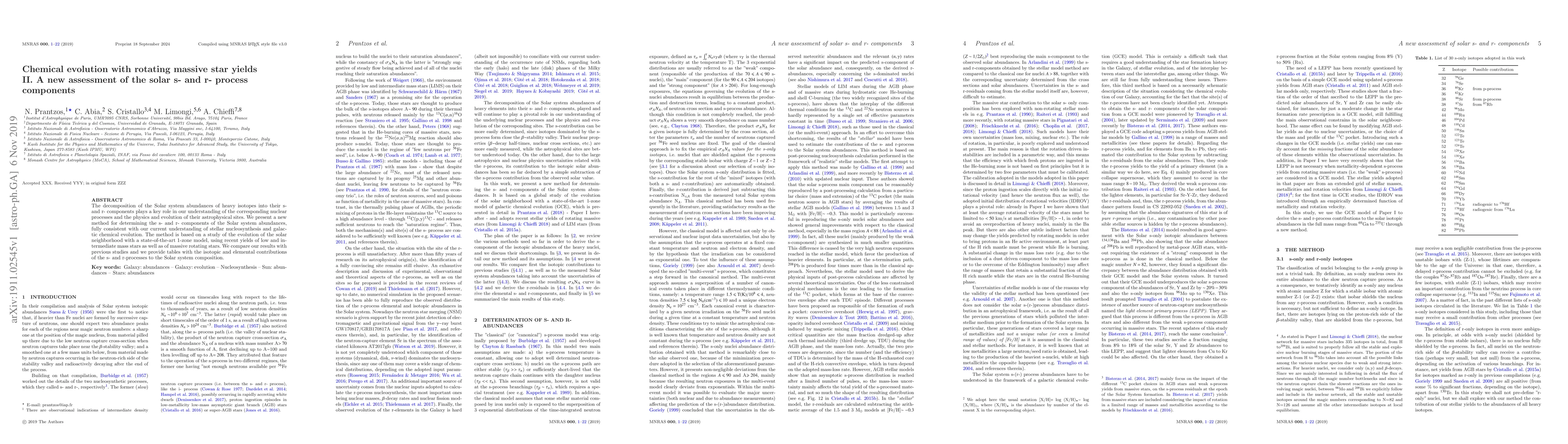 The decomposition of the Solar system abundances of heavy isotopes into their s- and r- components plays a key role in our understanding of the corresponding nuclear processes and the physics and evolution of their astrophysical sites. We present a new method for determining the s- and r- components of the Solar system abundances, fully consistent with our current understanding of stellar nucleosynthesis and galactic chemical evolution. The method is based on a study of the evolution of the solar neighborhood with a state-of-the-art 1-zone model, using recent yields of low and intermediate mass stars as well as of massive rotating stars. We compare our results with previous studies and we provide tables with the isotopic and elemental contributions of the s- and r-processes to the Solar system composition.